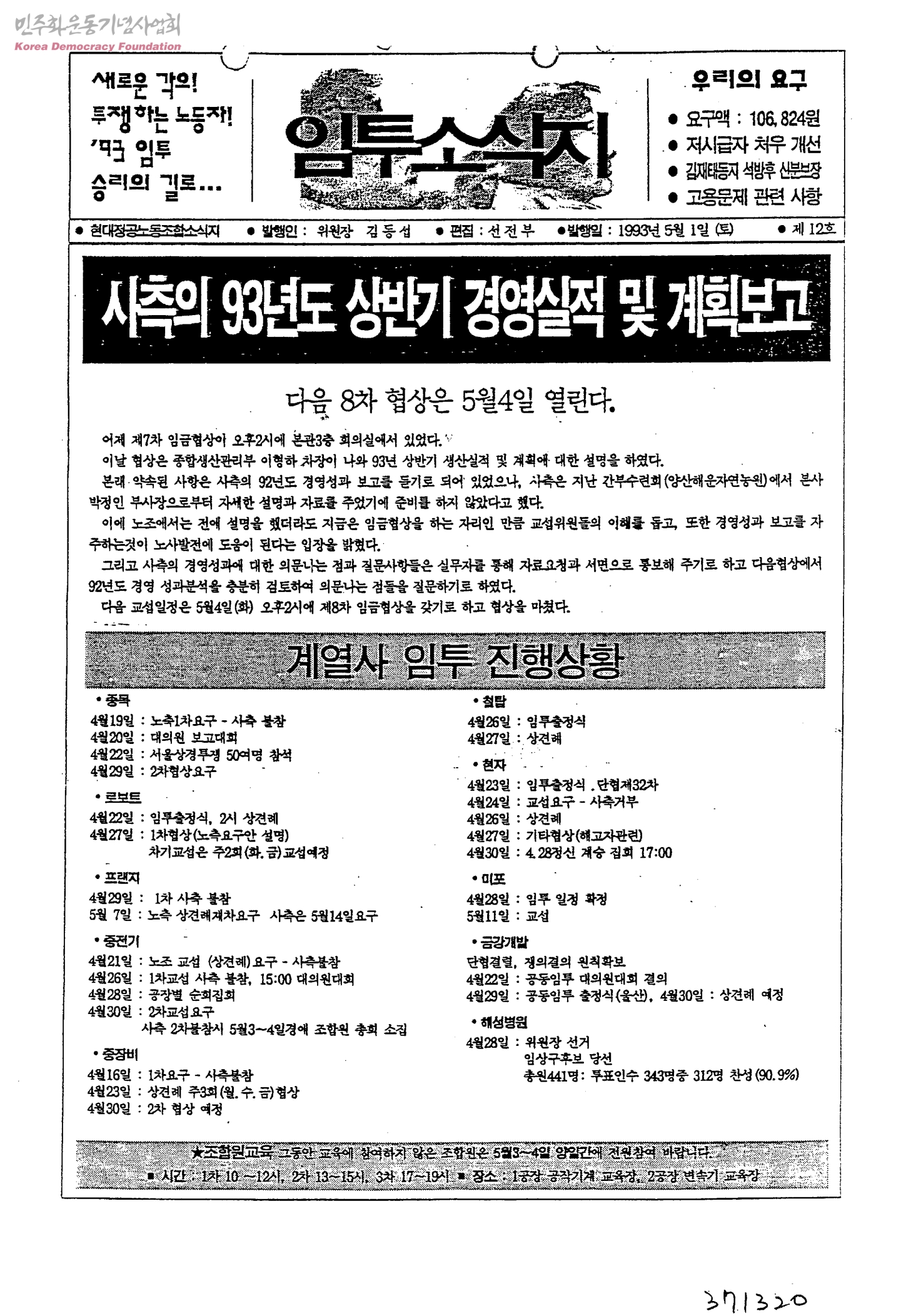 - 사측의 93년도 상반기 경영실적 및 계획보고 - 다음 8차 협상은 5월4일 열린다. 가자! 부산역으로…