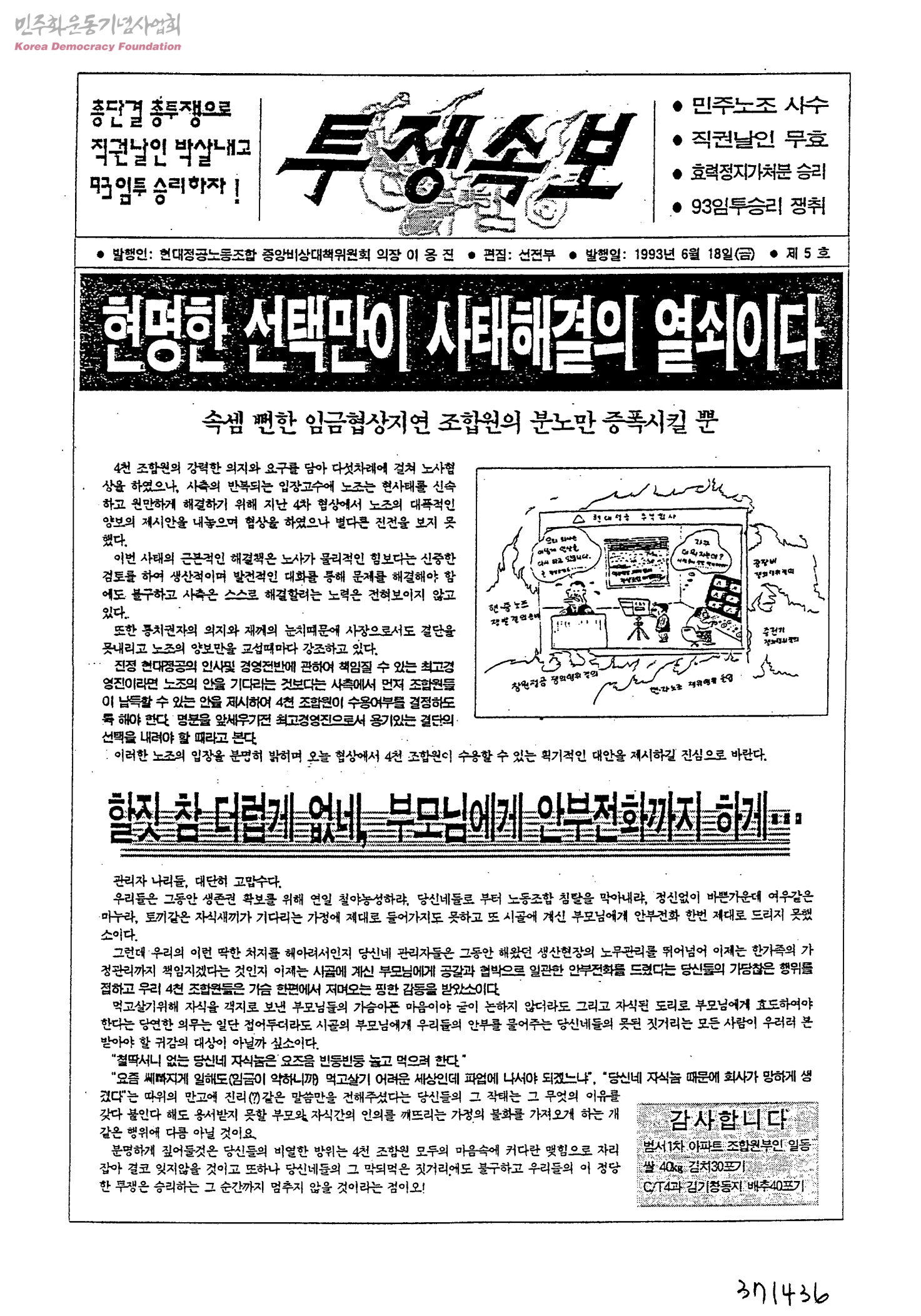 - 현명한 선택만이 사태해결의 열쇠이다 - 속셈 뻔한 임금협상지연 조합원의 분노만 증폭시킬 뿐