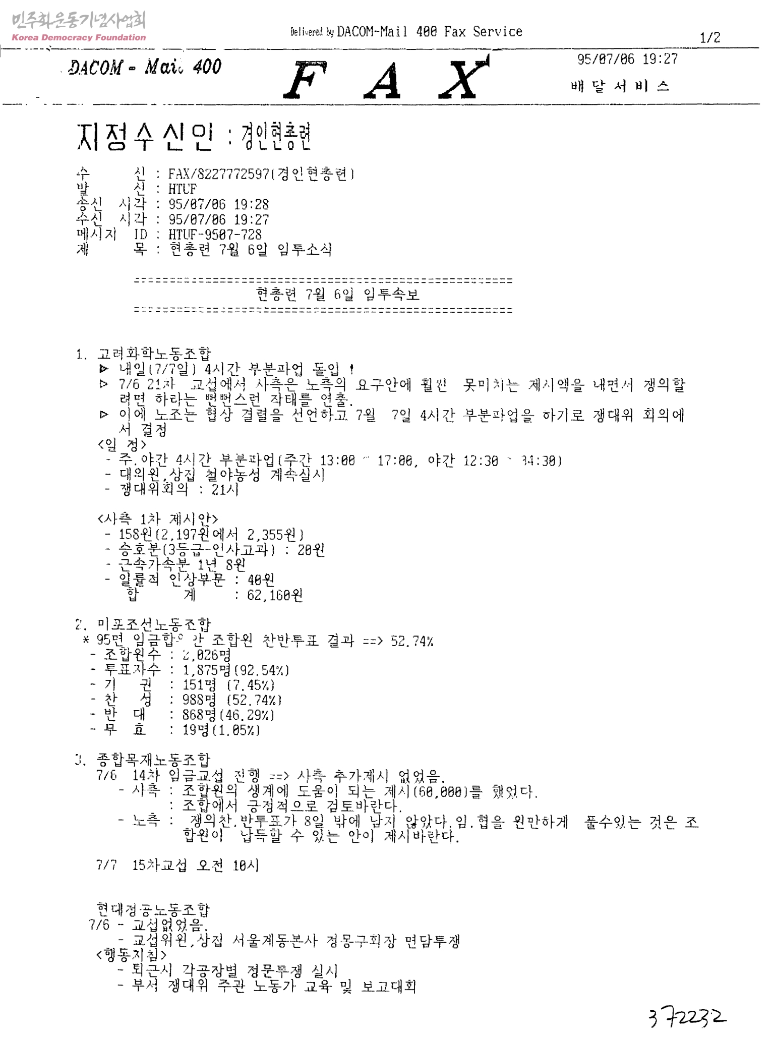 현총련 7월 6일 임투소식[수신:경인현대그룹노동조합총연합, 발신:HTUF]