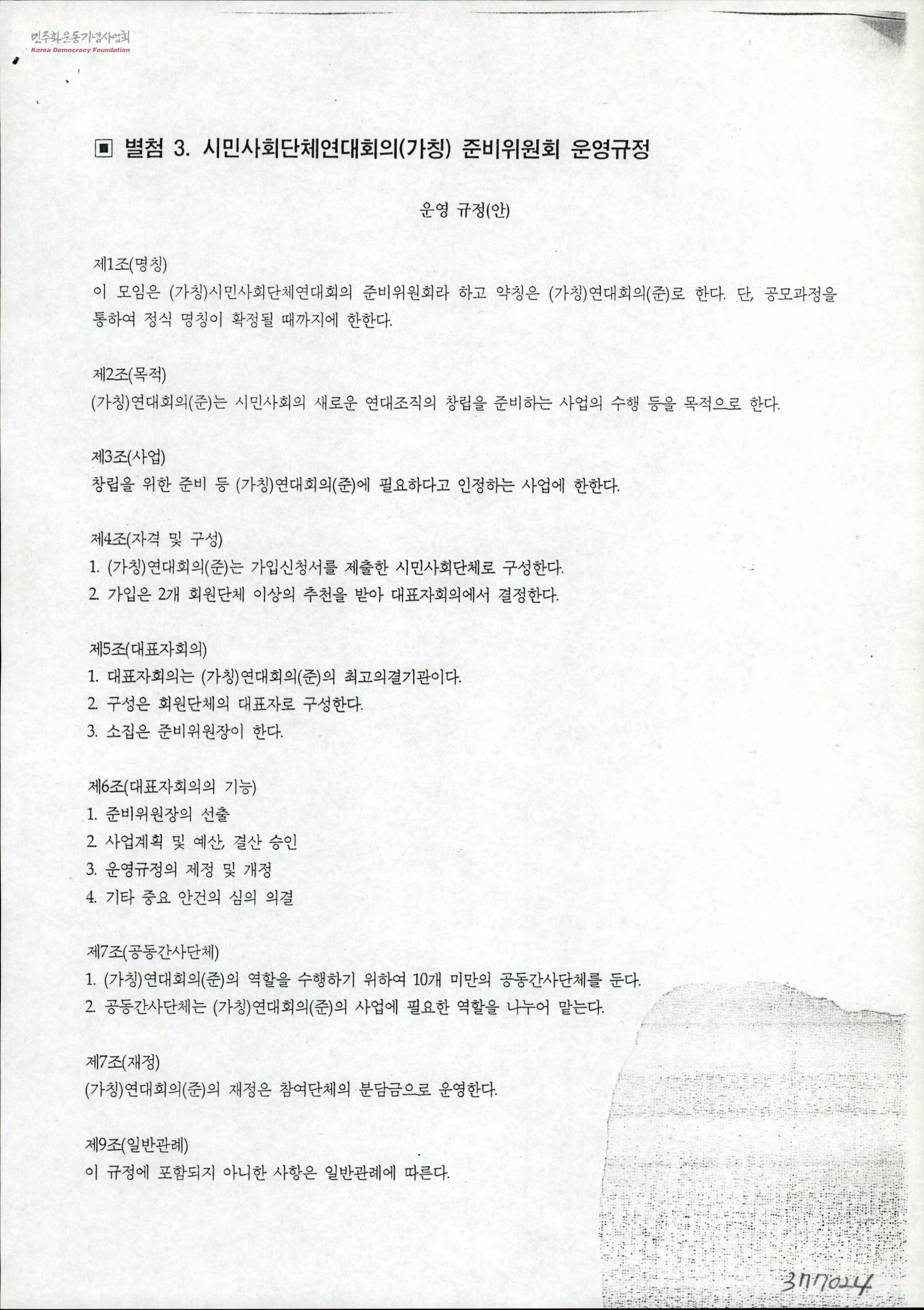 시민사회단체연대회의(가칭) 준비위원회 운영규정