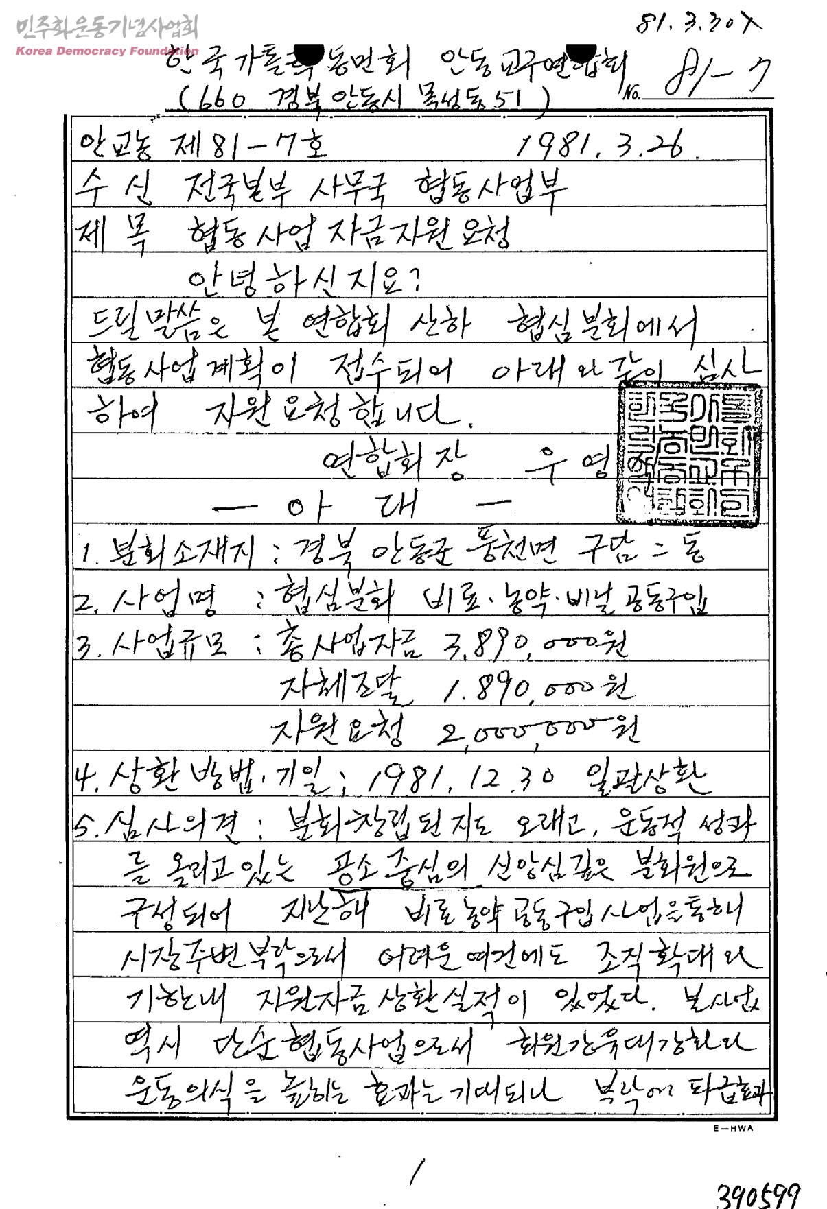 [81~82 사업계획서]경북 안동군 협심분회 비료·농약·비닐공동구입 협동사업 자금지원 요청서