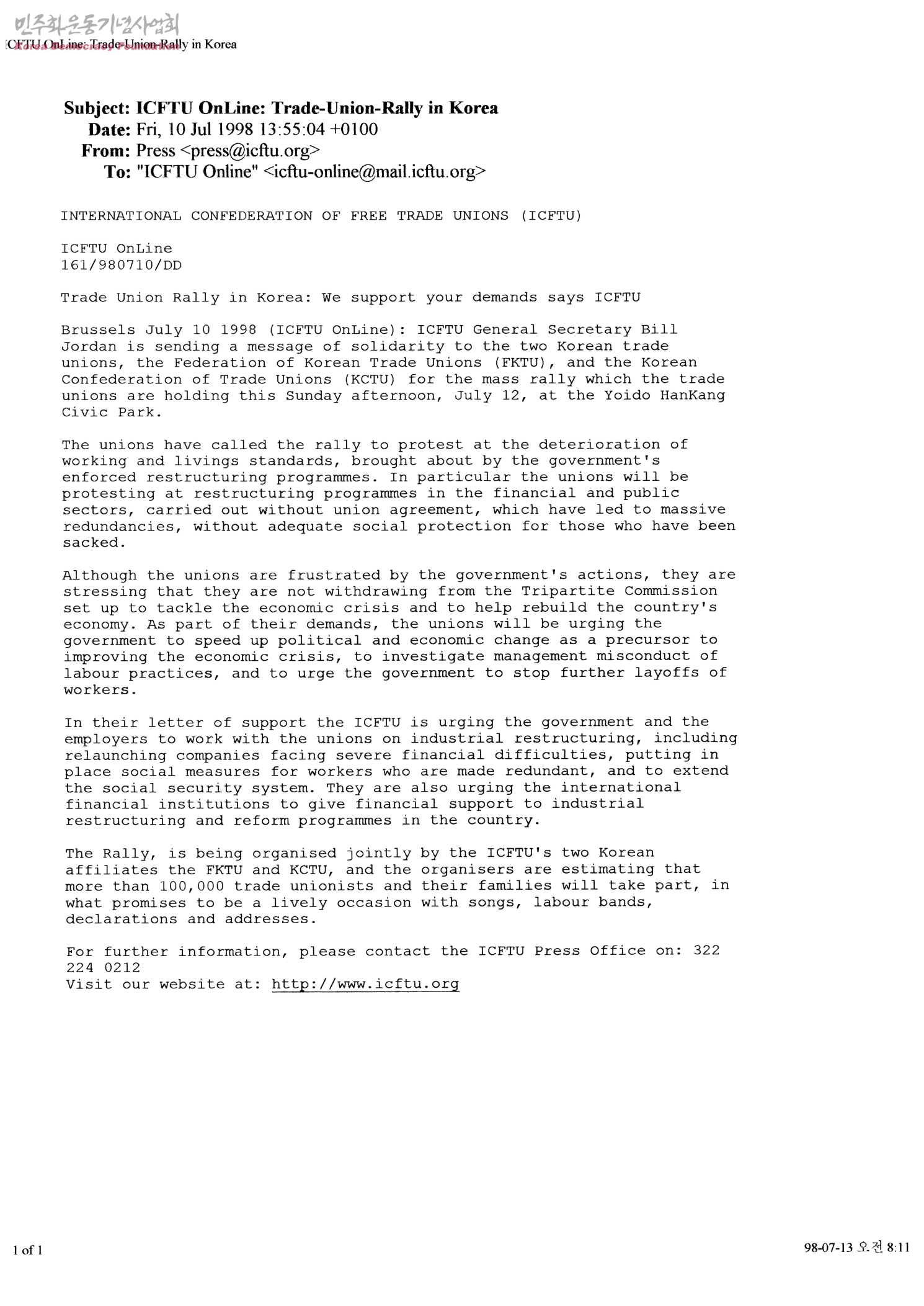 ICFTU OnLine:Trade-Union-Rally in Korea
