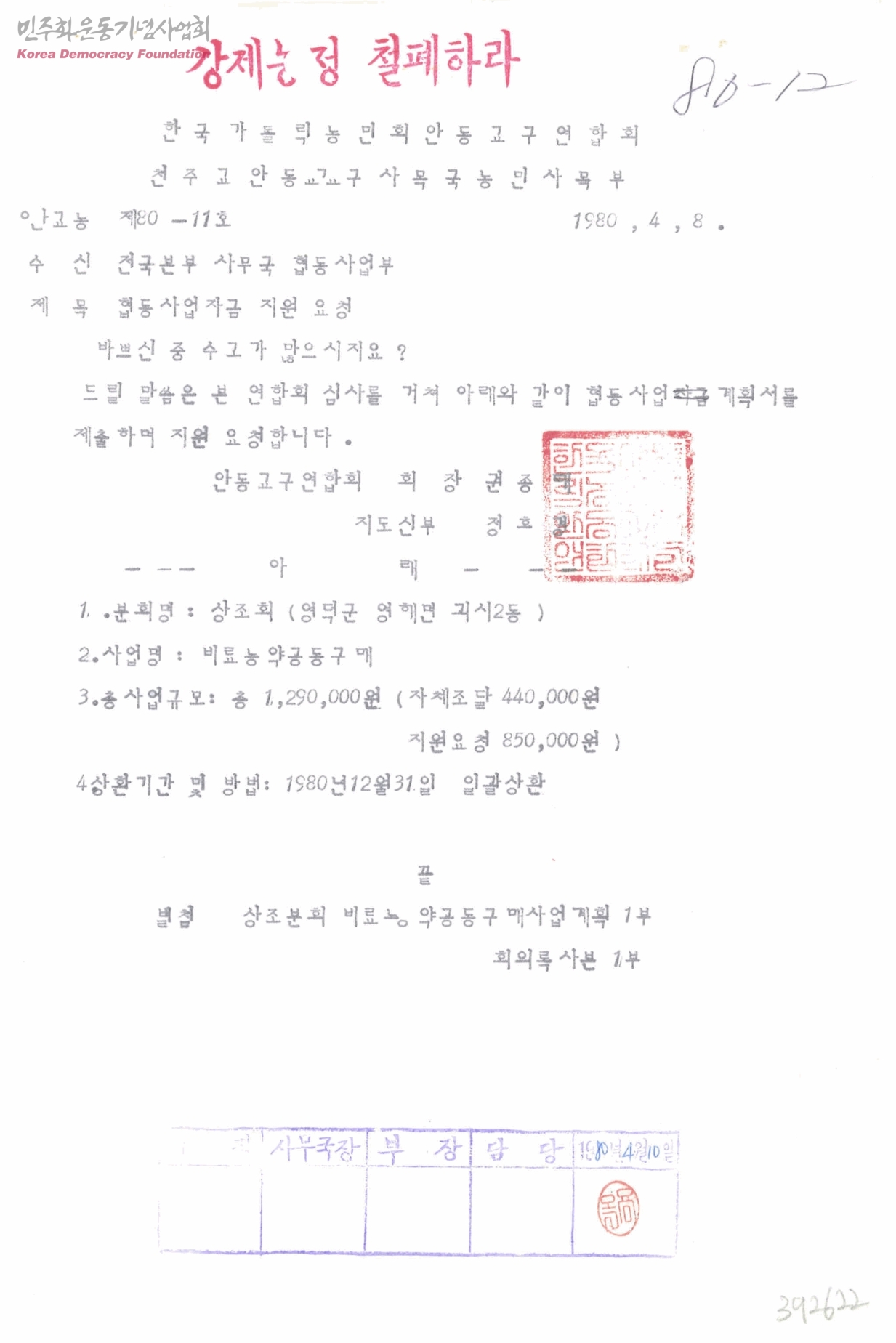 [78-80 사업계획서]경북 영덕군 상조회 비료·농약공동구입 협동사업자금 지원 요청