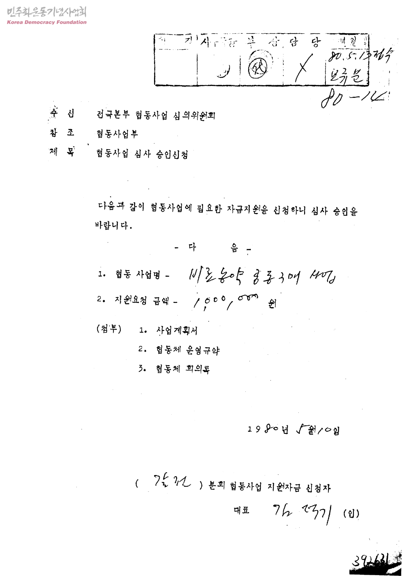 - 첨부: 사업계획서, 협동체 운영규약, 협동체 회의록