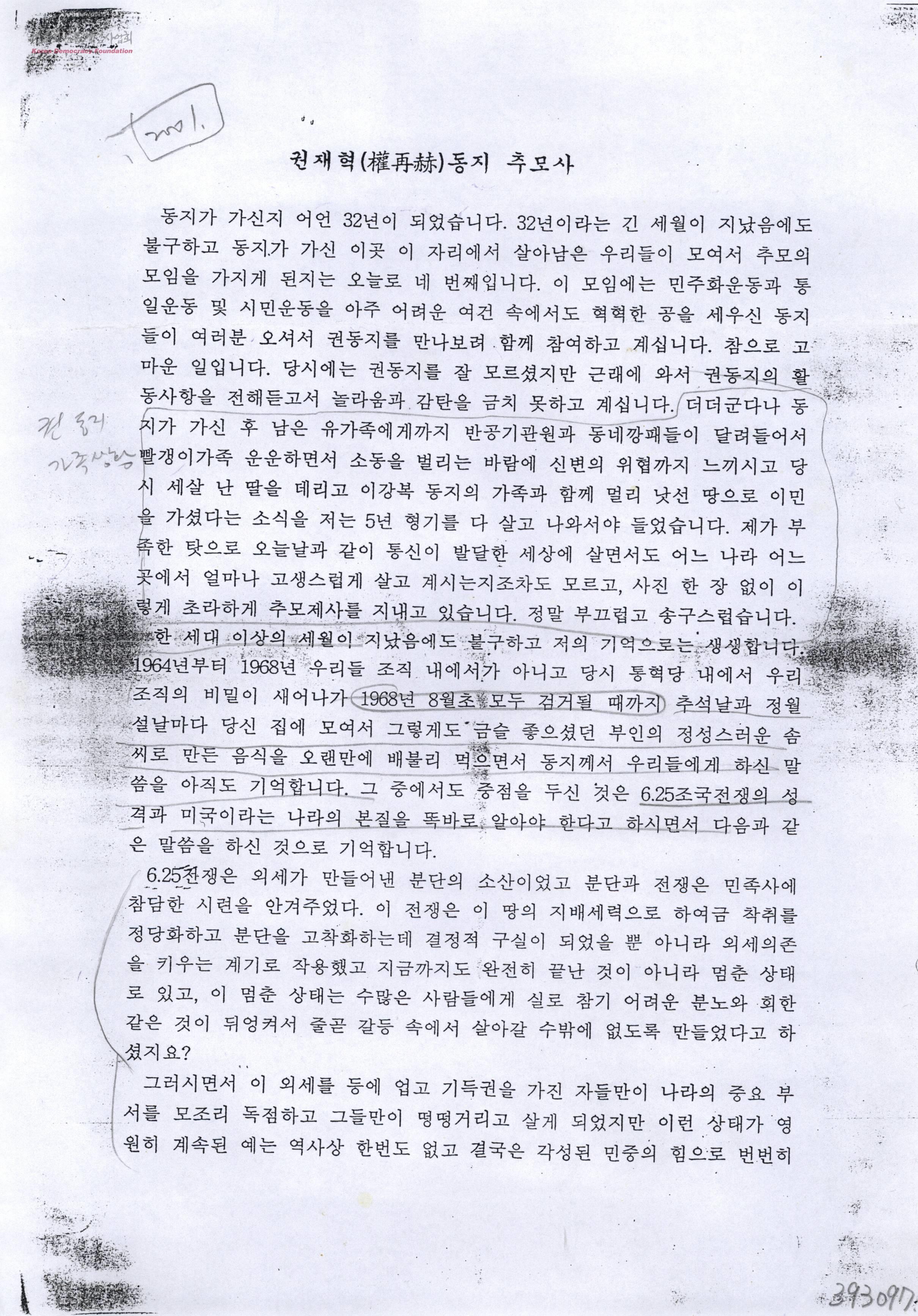 - 권재혁 동지 추도사