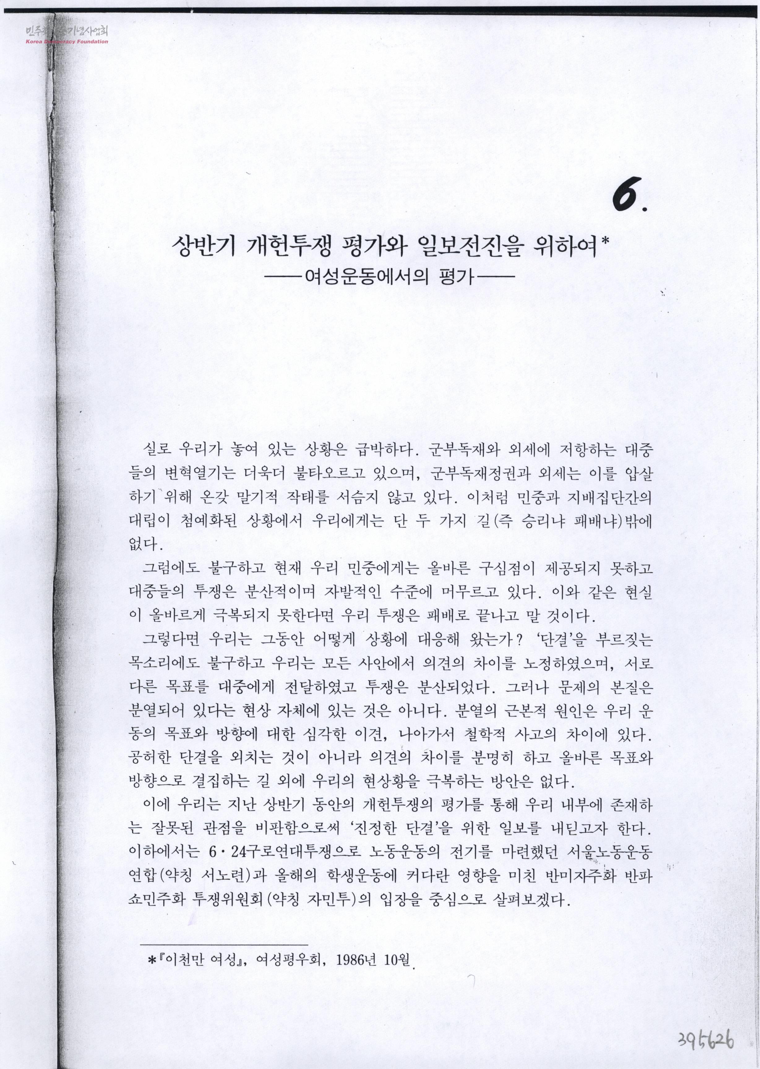 상반기 개헌투쟁 평가와 일보전진을 위하여- 여성운동에서의 평가
