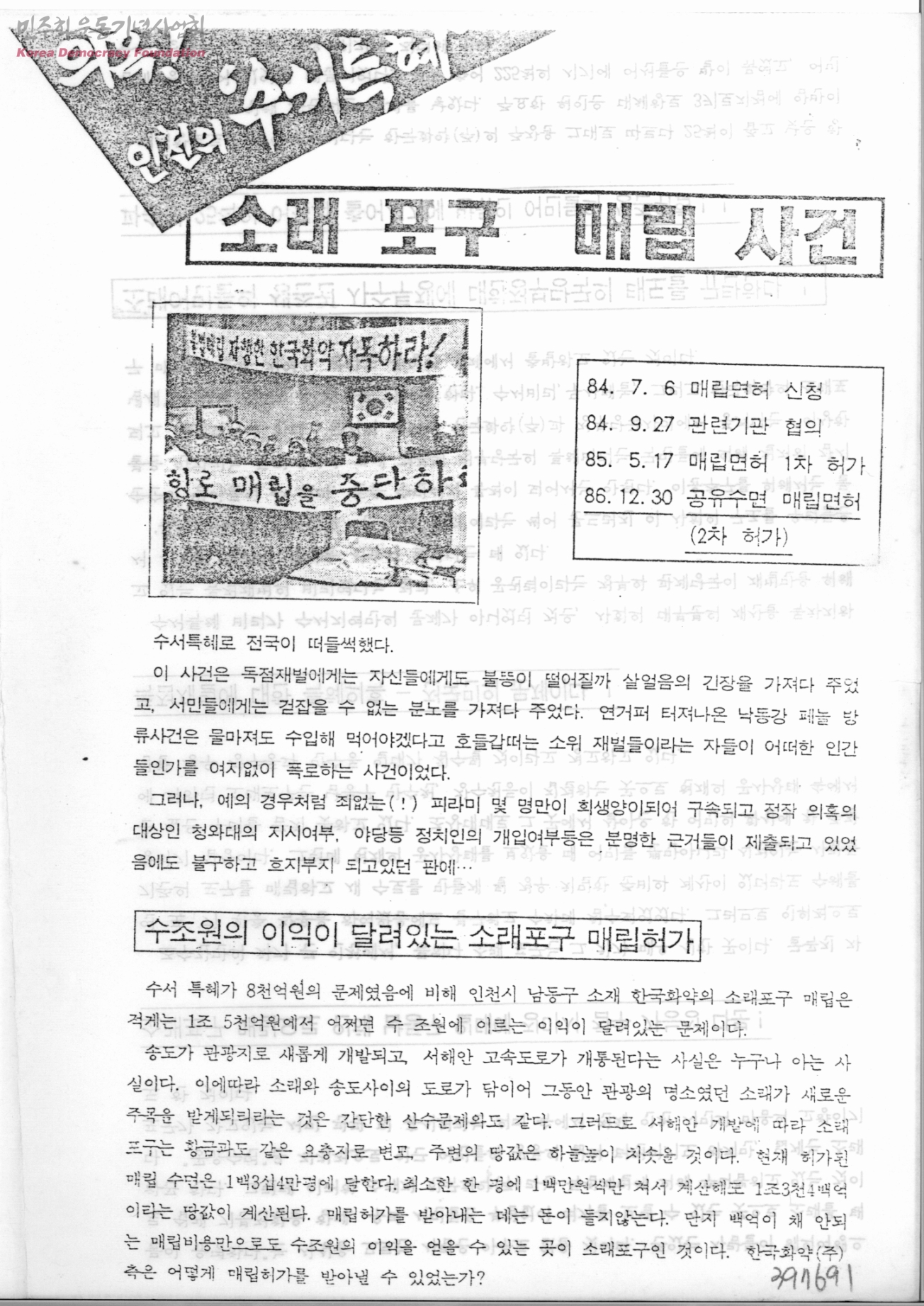- 민중당남동구지구당 소래포구매립사건대책위원회