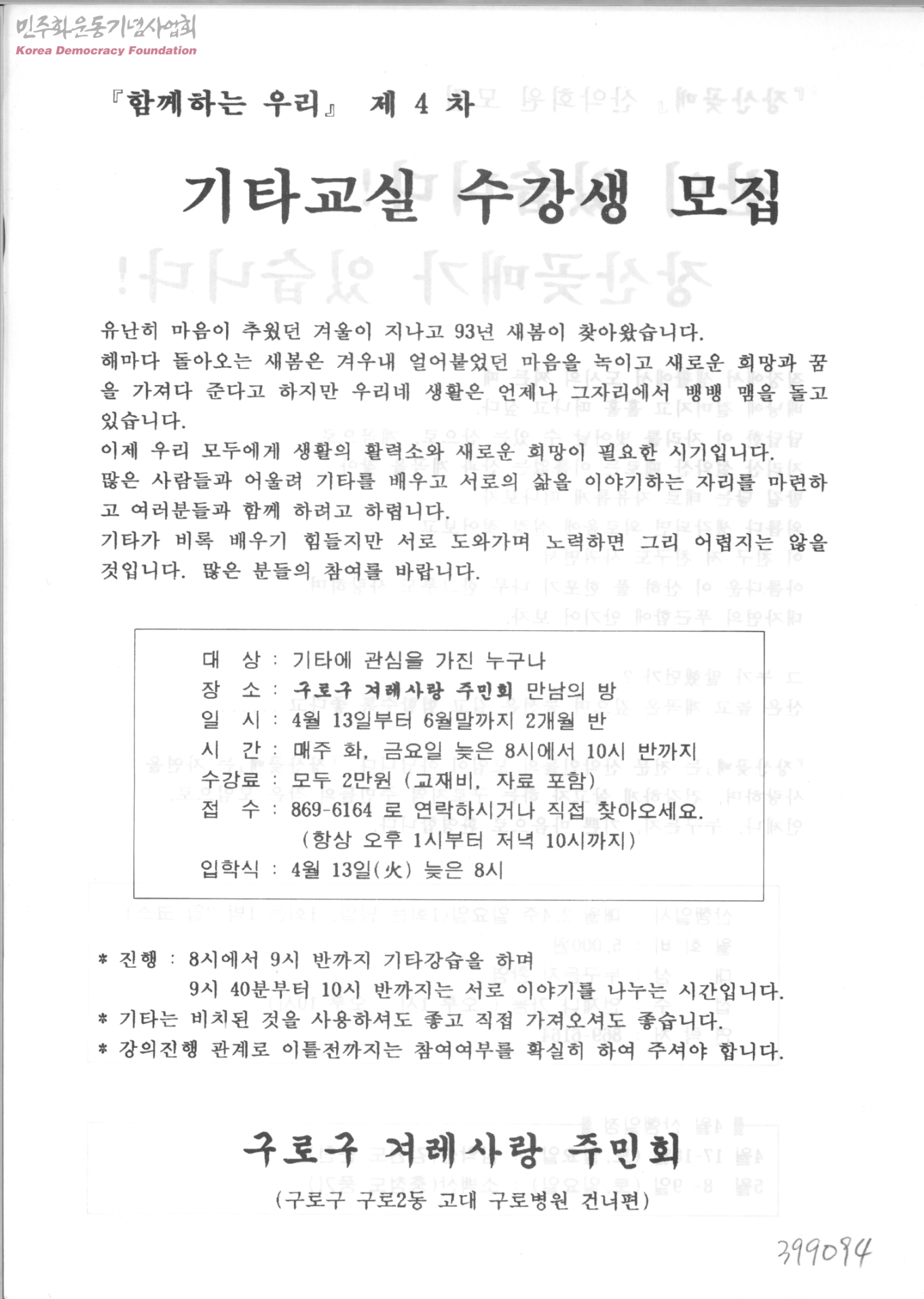 『함께하는 우리』제4차 기타교실 수강생 모집