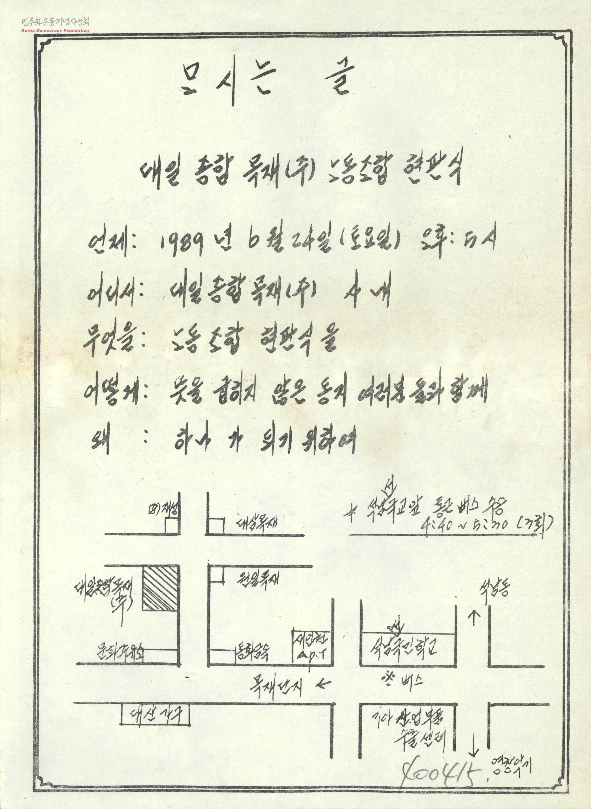 모시는 글-대일종합목재(주)노동조합 현판식