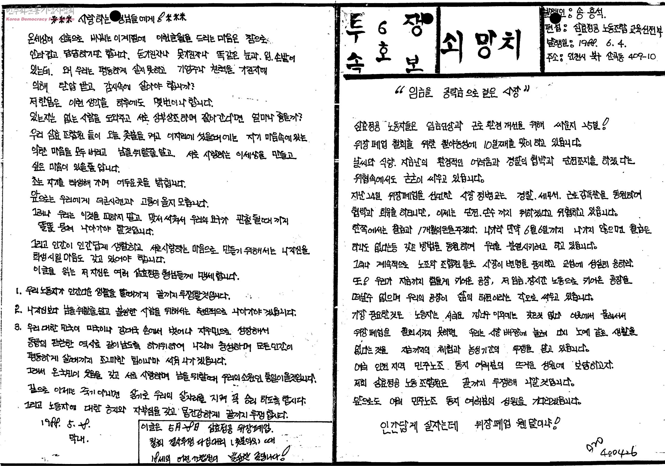 투쟁속보 쇠망치 6호
