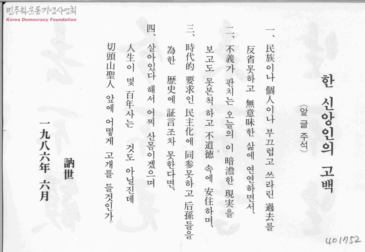 한 신앙인의 고백