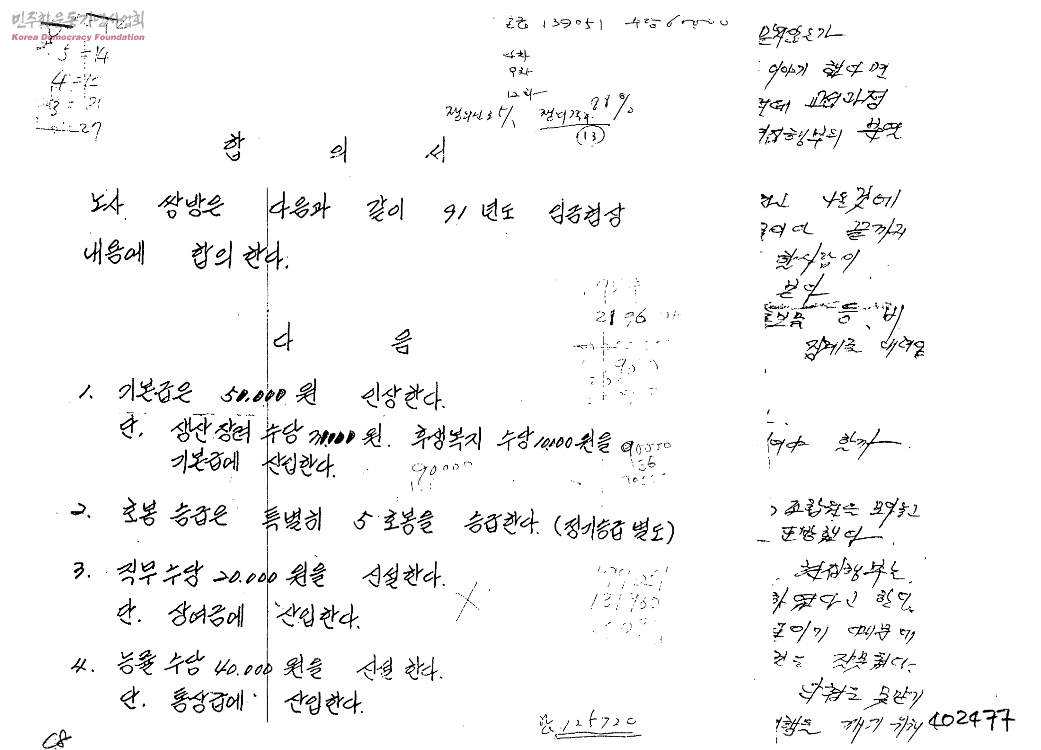 [한라중공업 91년 임투관련]합의서[한라중공업 관련]