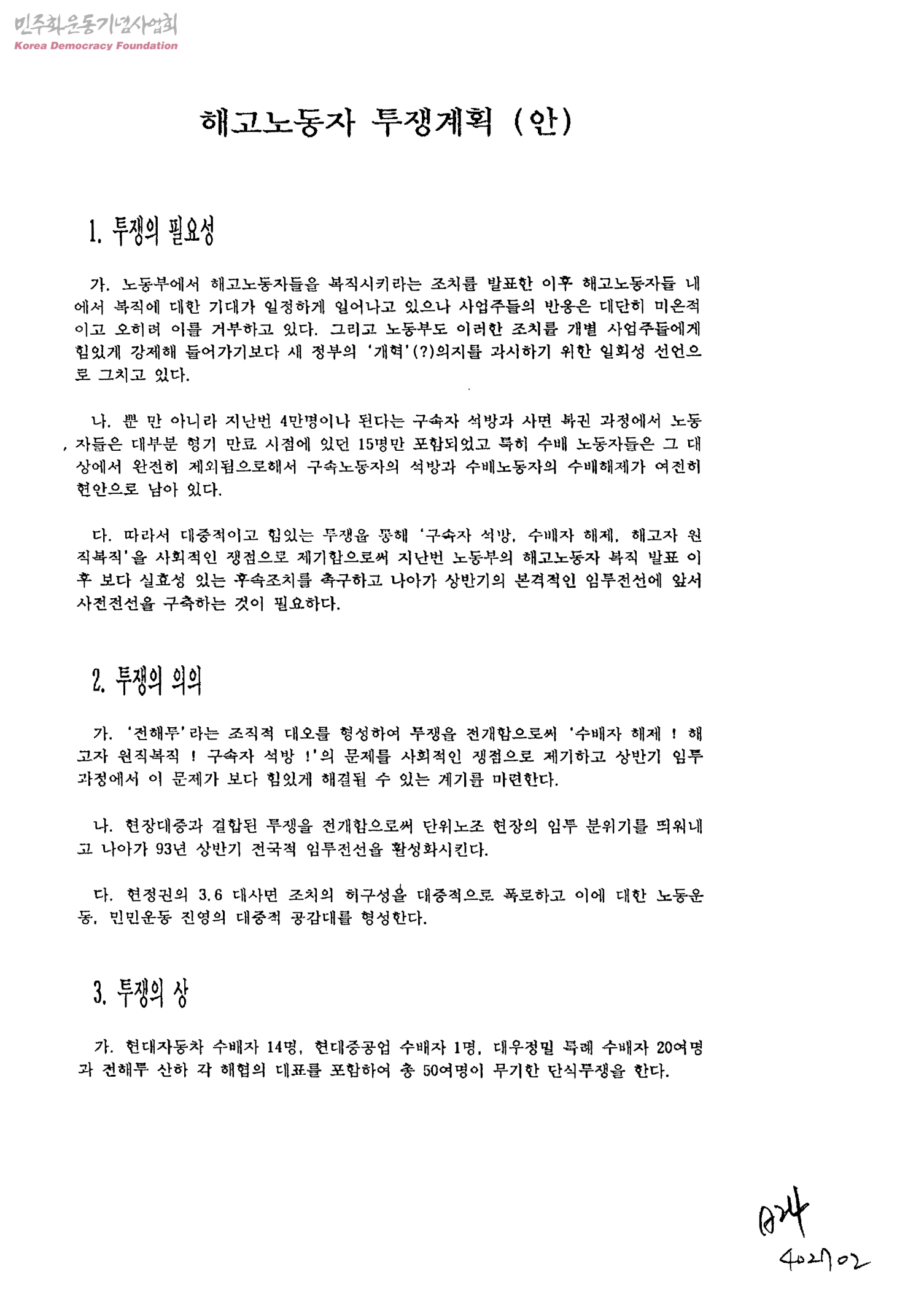 해고노동자 투쟁계획안