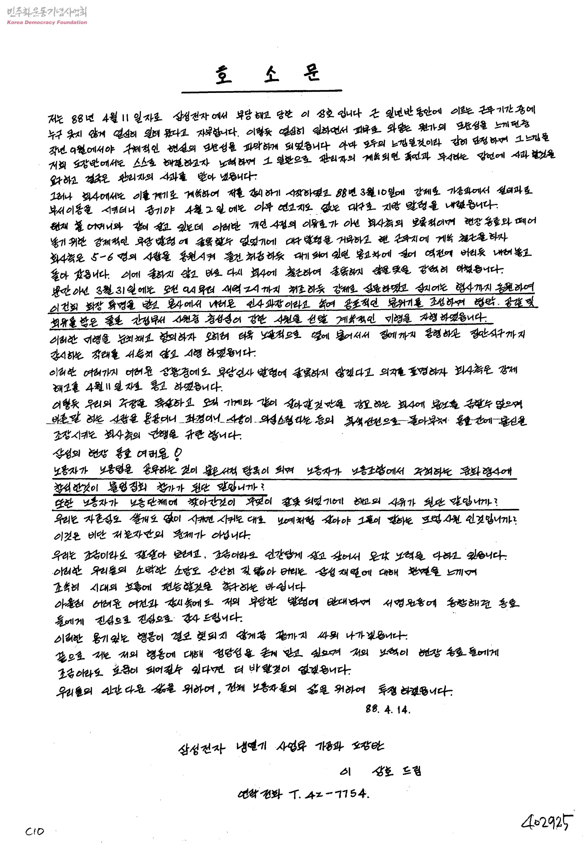 [울산 현대]호소문[삼성전자에서 부당해고당한 이상호의 호소]