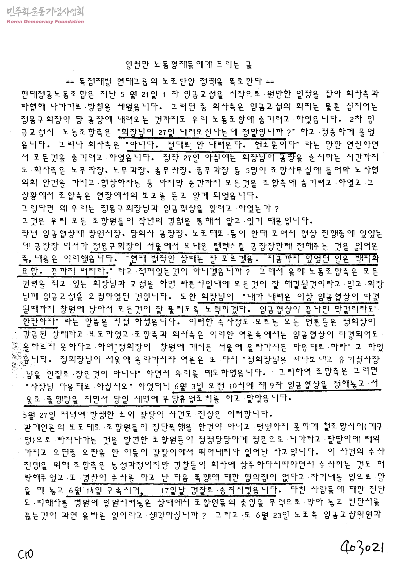 [울산 현대]일천만 노동형제들에게 드리는 글-독점재벌 현대그룹의 노조탄압 정책을 폭로한다
