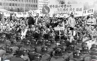 - 생산자 및 기증자가 ‘박용수’인 사진의 사용은 구매신청을 클릭하여 직접 사진 구매 신청을 하실 수 있습니다. 생산자 및 기증자가 ‘경향신문사’인 사진의 사용은 경향신문사 담당자(02-3701-1635)를 통해 구매하실 수 있습니다. 그 외의 생산자 및 기증자는 민주화운동기념사업회 사료관 담당자( h_jungwon@kdemo.or.kr / 031-361-9586 )에 문의바랍니다.