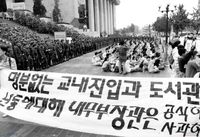 - "교육주체로서의 학생 역할 정립, 참교육의 실현, 해직교사 복직 투쟁 등 교육문제 해결을 위해 노·농·빈·교·청·학 일선대표자투쟁결의대회 실무준비위원회에서 작성한 노·농·빈·교·청·학 일선 대표자 투쟁결의 대회 실무준비 위원회 보고서로 주 내용은 -경과 -결정사항 1. 대회의 목표(대중적 결의 내용) 2. 포괄범위 등의 내용이다."