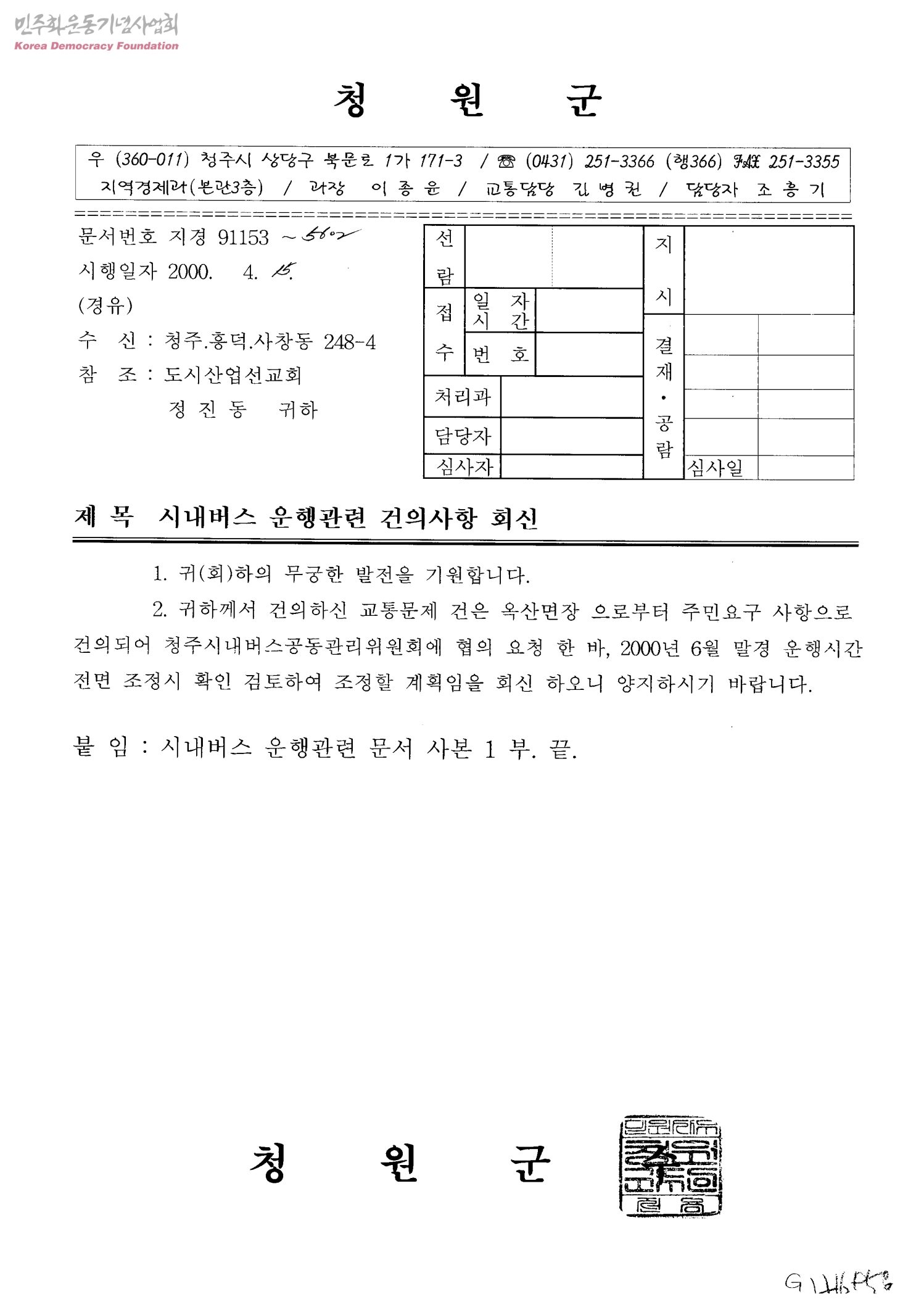 - 첨부:시내버스 운행관련 문서 사본 1부.