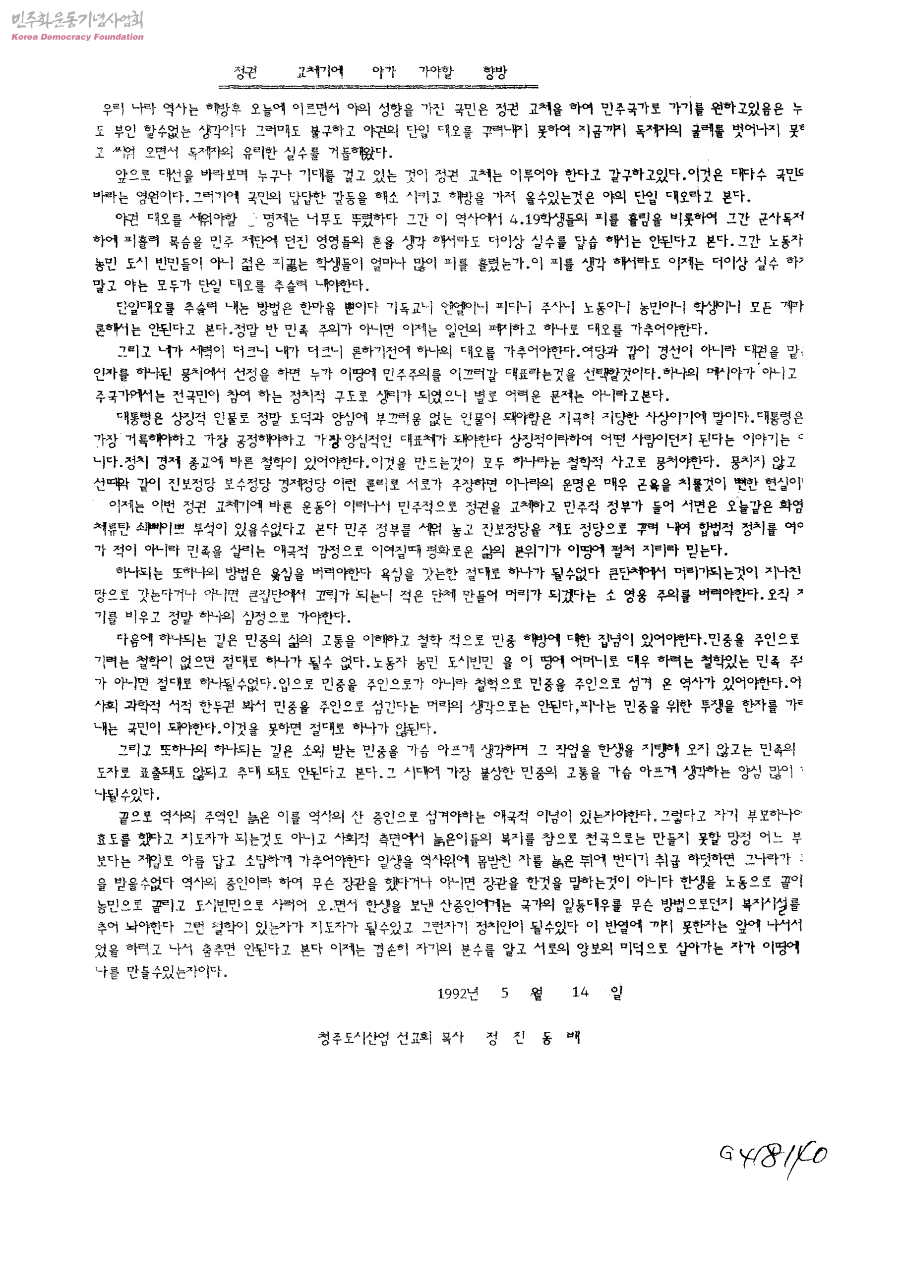 - 새로운 정권은 노동자와 서민 같은 민중이 잘 살 수 있는 사회를 만들어야 한다
