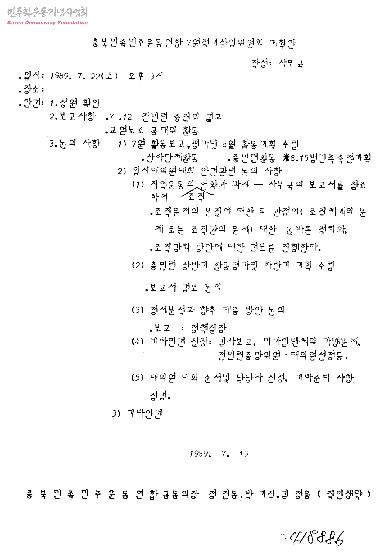 충북민족민주운동연합 7월정기상임위원회 계획안
