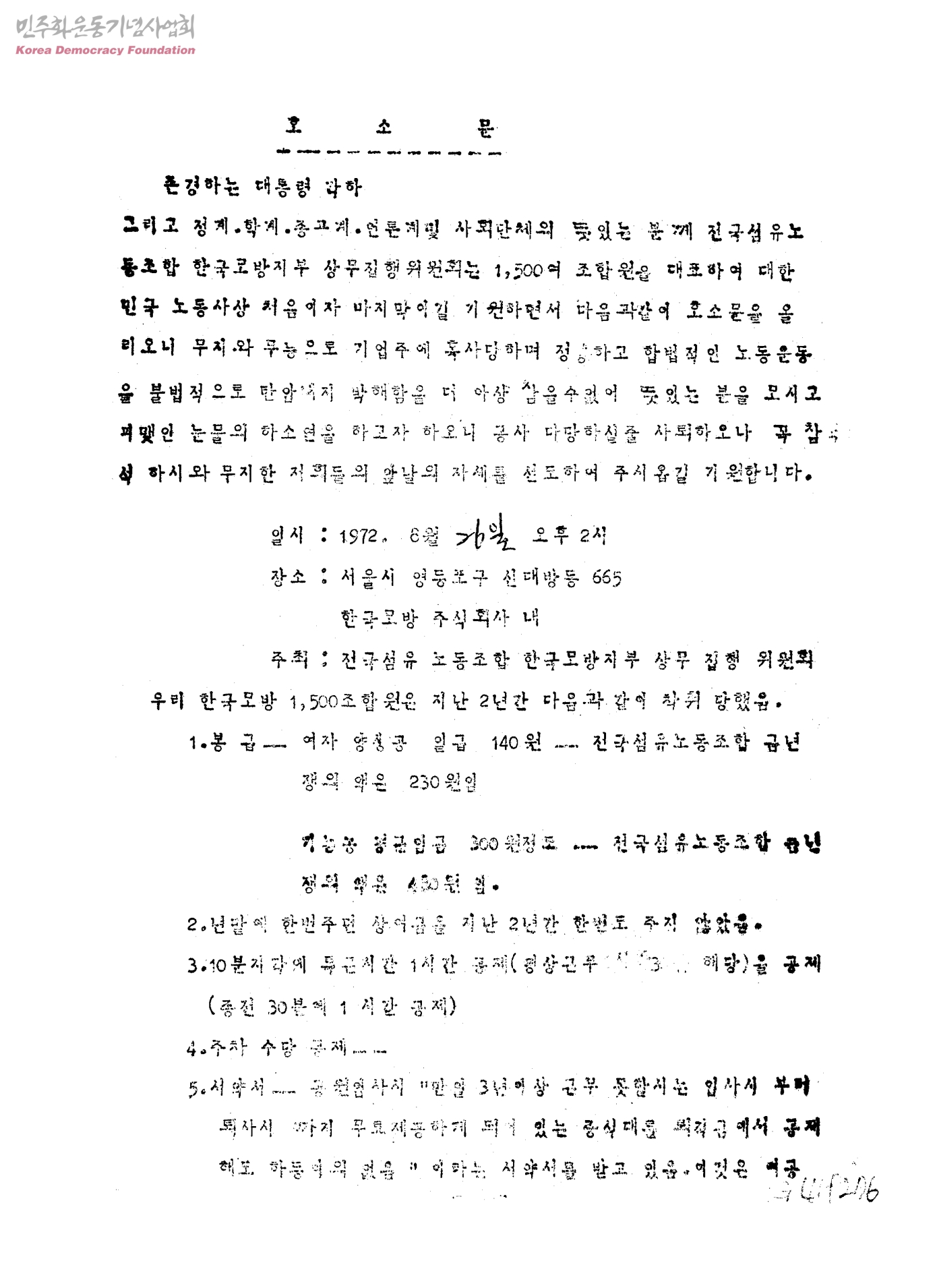 - 생산자 및 기증자가 ‘박용수’인 사진의 사용은 구매신청을 클릭하여 직접 사진 구매 신청을 하실 수 있습니다. 생산자 및 기증자가 ‘경향신문사’인 사진의 사용은 경향신문사 담당자(02-3701-1635)를 통해 구매하실 수 있습니다. 그 외의 생산자 및 기증자는 민주화운동기념사업회 사료관 담당자( hyunchaek@kdemo.or.kr / 02-6440-8961 )에 문의바랍니다.