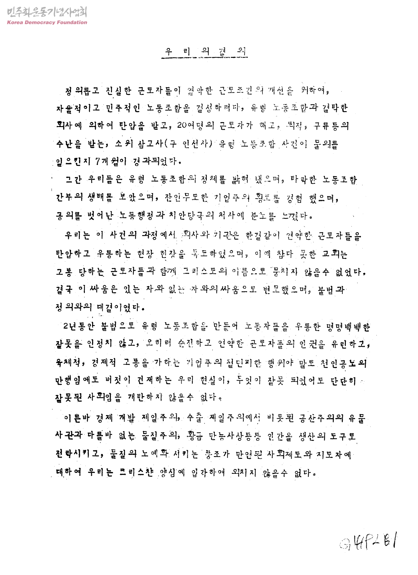 - 생산자 및 기증자가 ‘박용수’인 사진의 사용은 구매신청을 클릭하여 직접 사진 구매 신청을 하실 수 있습니다. 생산자 및 기증자가 ‘경향신문사’인 사진의 사용은 경향신문사 담당자(02-3701-1635)를 통해 구매하실 수 있습니다. 그 외의 생산자 및 기증자는 민주화운동기념사업회 사료관 담당자( hyunchaek@kdemo.or.kr / 02-6440-8961 )에 문의바랍니다.