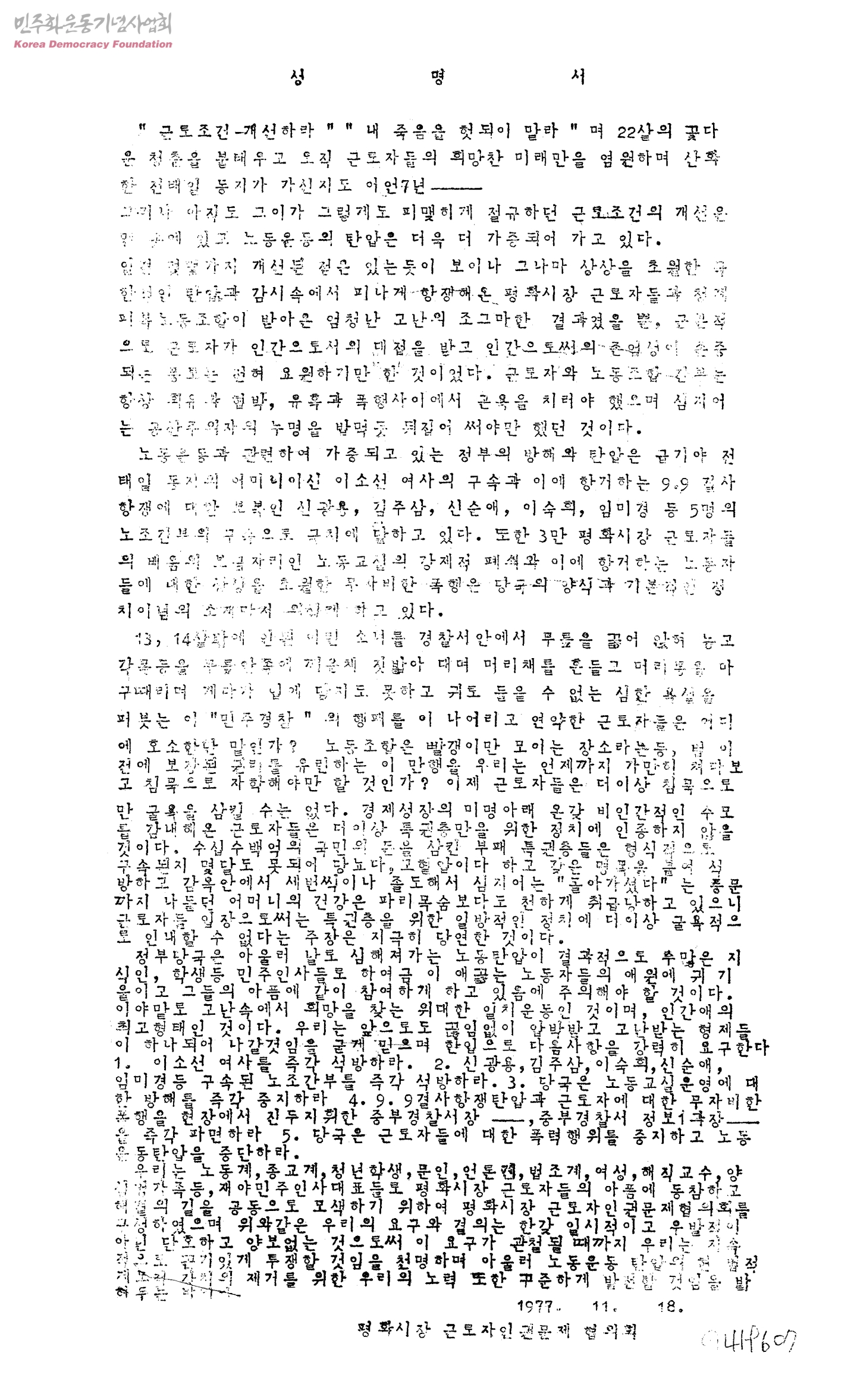 - 생산자 및 기증자가 ‘박용수’인 사진의 사용은 구매신청을 클릭하여 직접 사진 구매 신청을 하실 수 있습니다. 생산자 및 기증자가 ‘경향신문사’인 사진의 사용은 경향신문사 담당자(02-3701-1635)를 통해 구매하실 수 있습니다. 그 외의 생산자 및 기증자는 민주화운동기념사업회 사료관 담당자( hyunchaek@kdemo.or.kr / 02-6440-8961 )에 문의바랍니다.