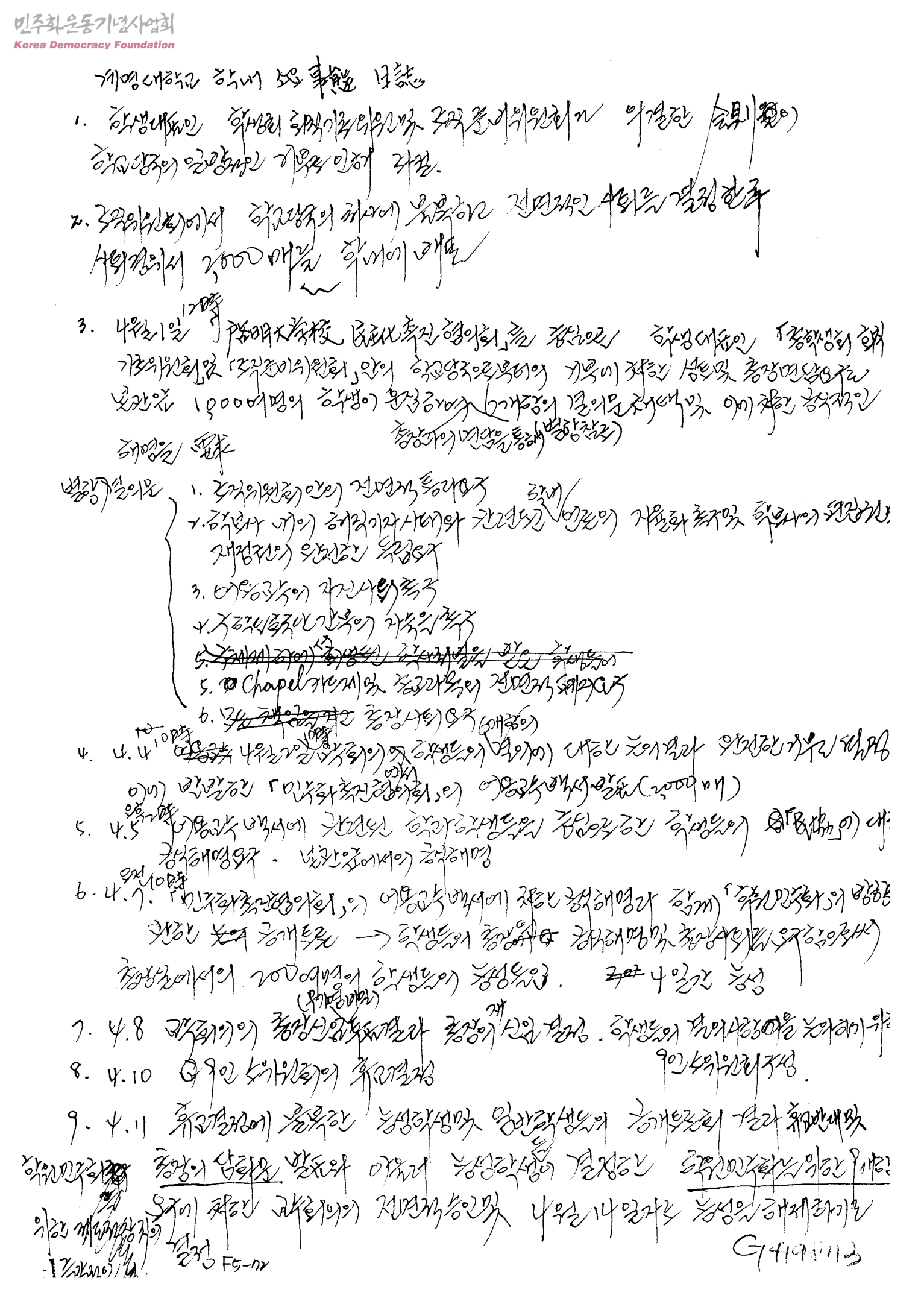 계명대학교 학내 소요事態 日誌