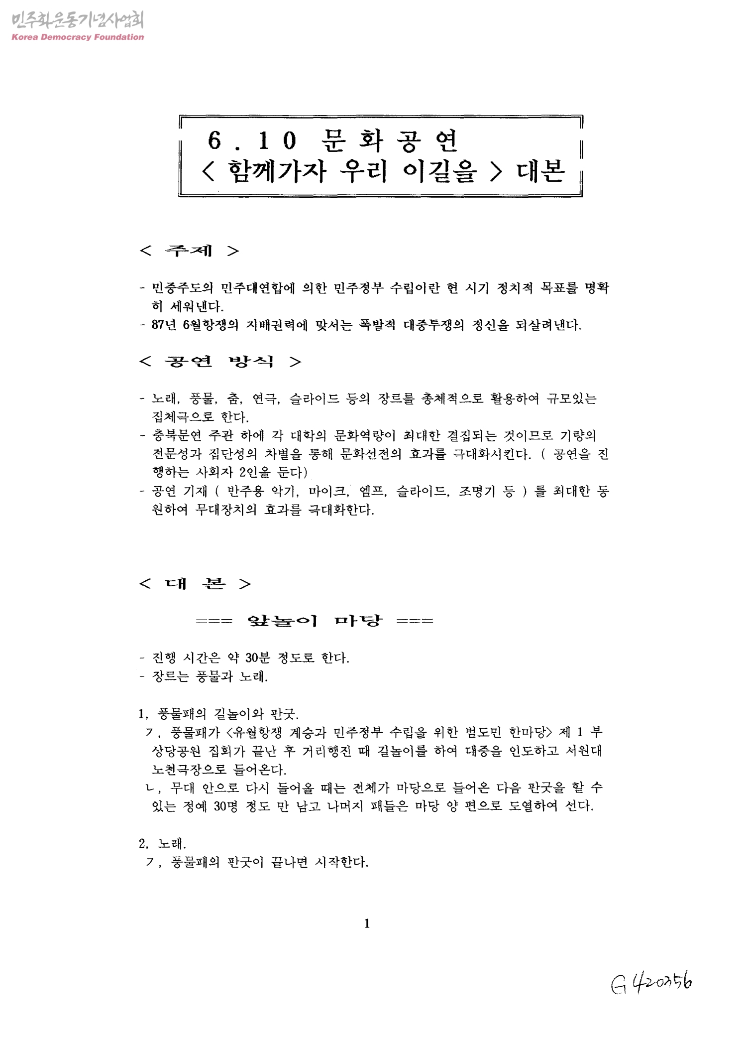 6.10 문화공연 <함께가자 우리 이길을> 대본