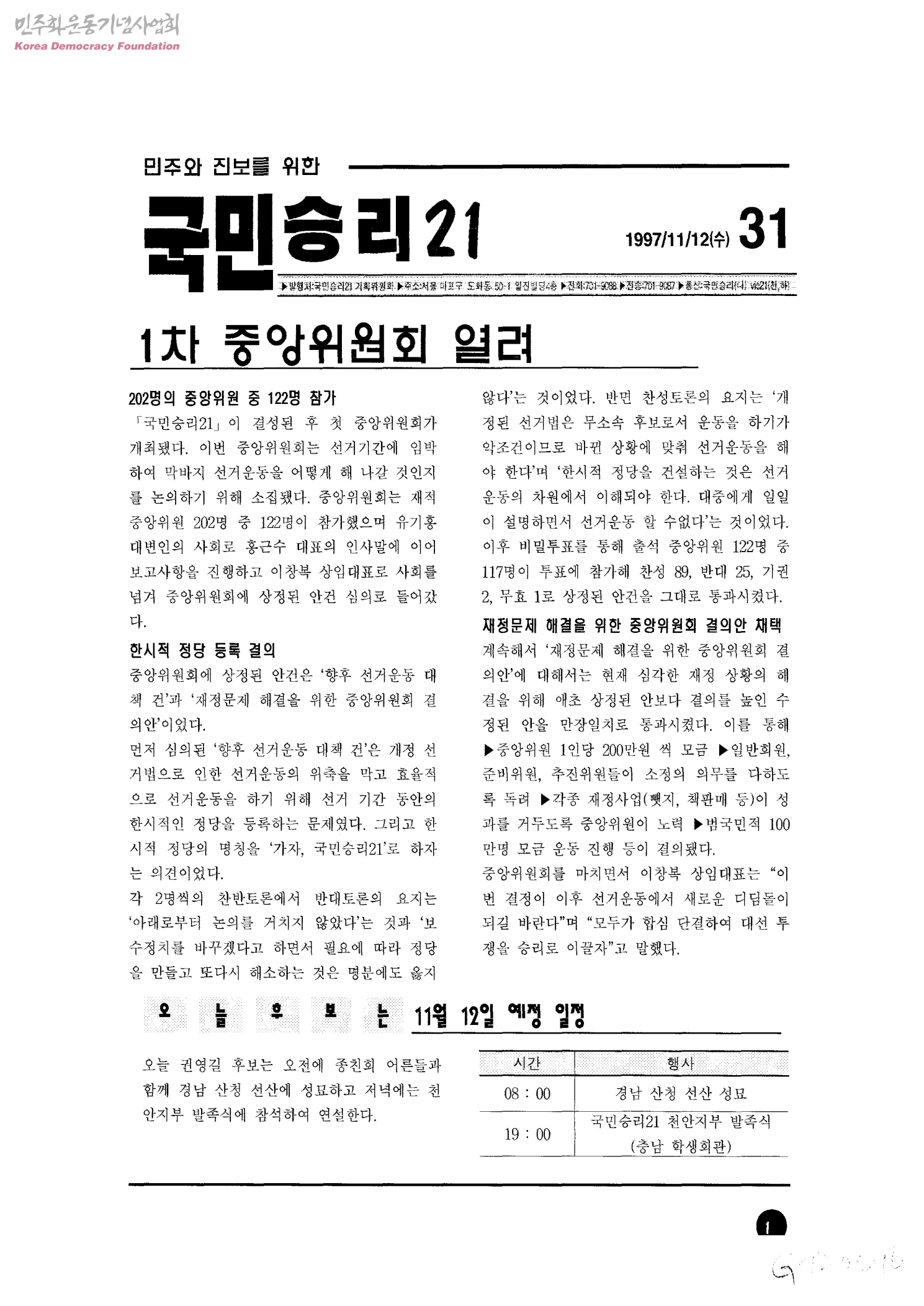 - 1차 중앙위원회 열려 후보동정 쉬어가기 '미래를 위해 국민후보 지지해야'(조혁 한청협연수실장 말11호) 논평 -영장실질심사제 개정 안될 말