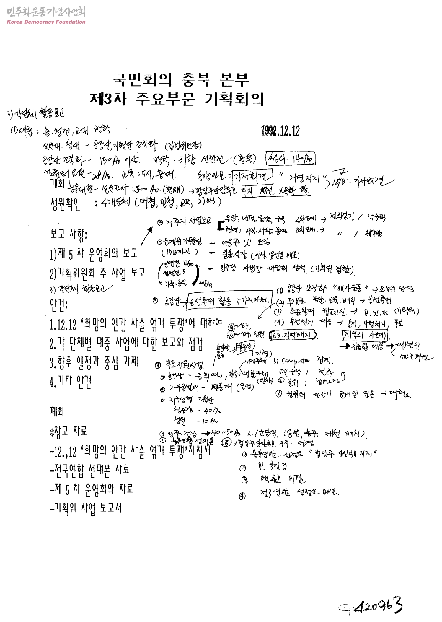 [대중사업점검상황-기획위원회관련]국민회의 충북 본부 제3차 주요부문 기획회의