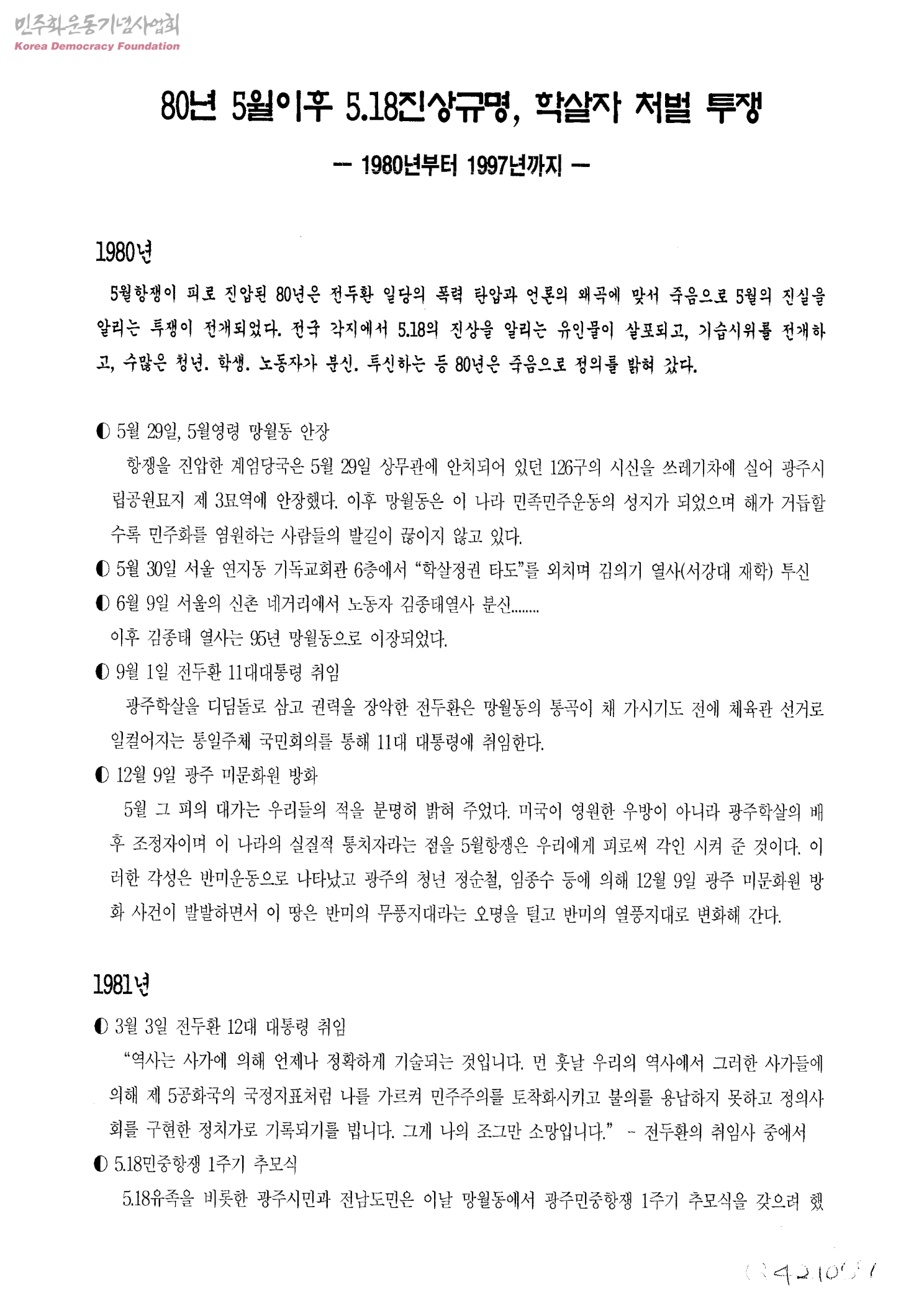 80년 5월 이후 5.18진상규명, 학살자 처벌 투쟁-1980년부터 1997년까지