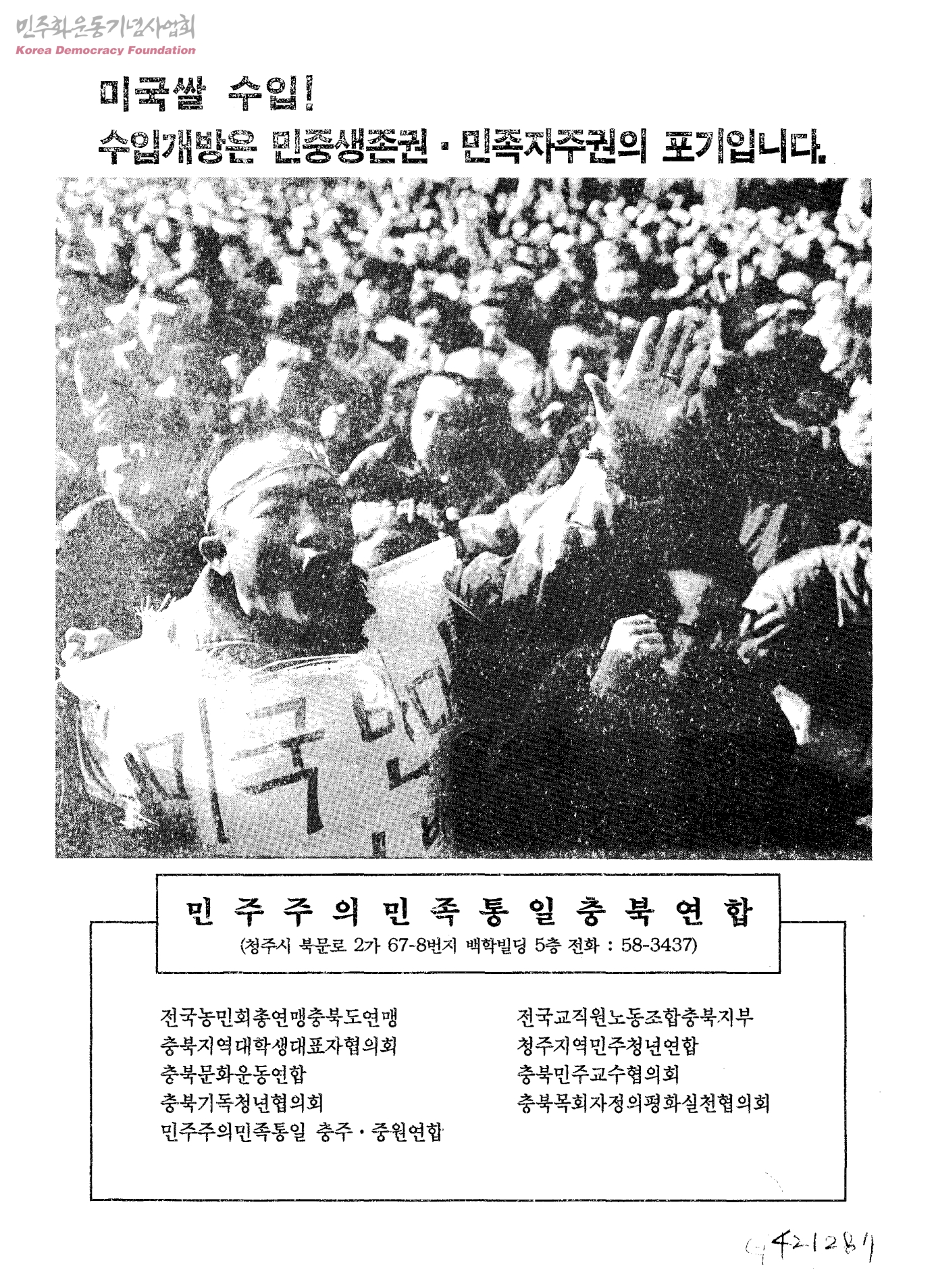 미국쌀 수입! 수입개방은 민중생존권.민족자주권의 포기입니다.