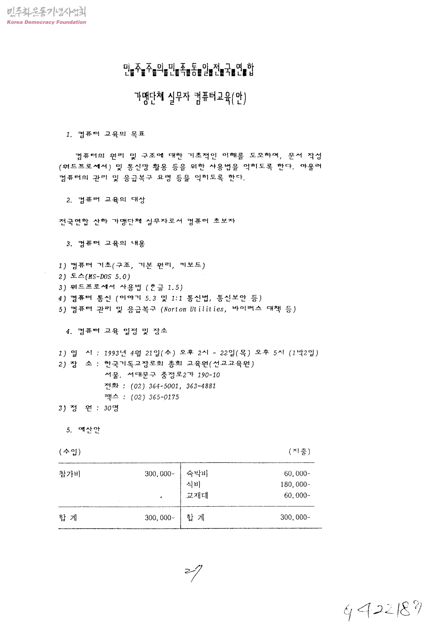 민주주의민족통일전국연합 가맹단체 실무자 컴퓨터교육(안)
