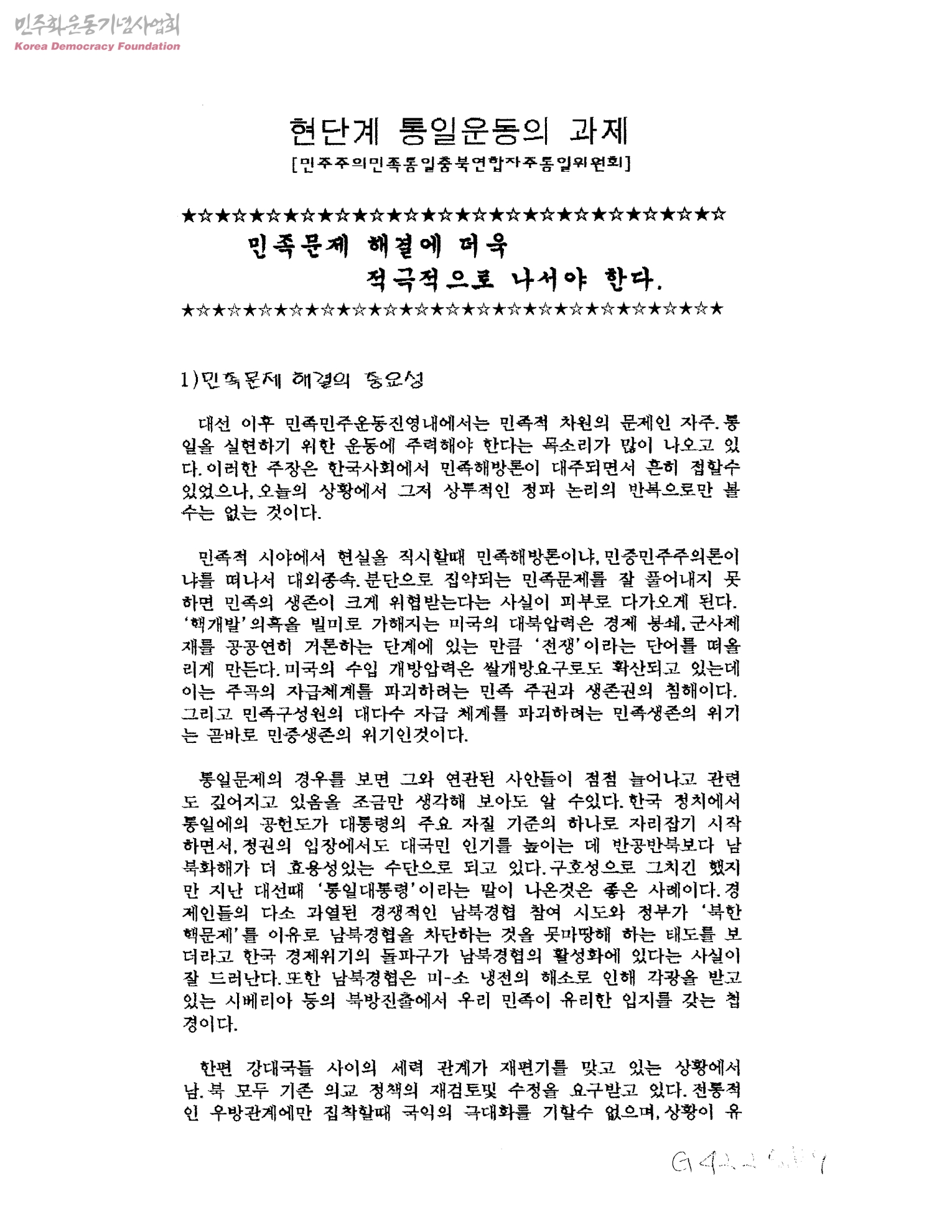 현단계 통일운동의 과제