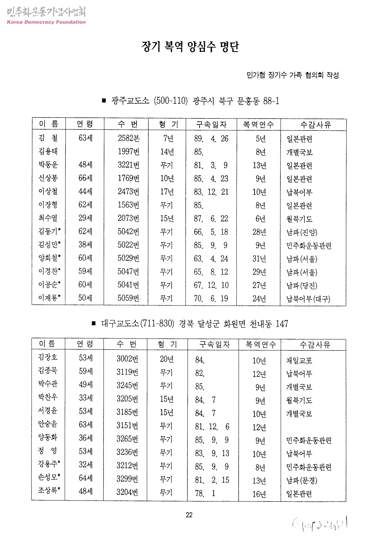 - 광주교도소,대구교도소,대전교도소,안동교도소,전주교도소,진주교도소,청주교도소