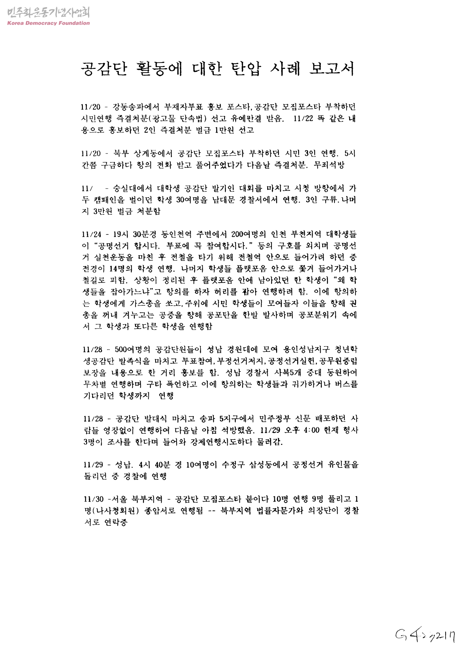 공감단 활동에 대한 탄압 사례 보고서