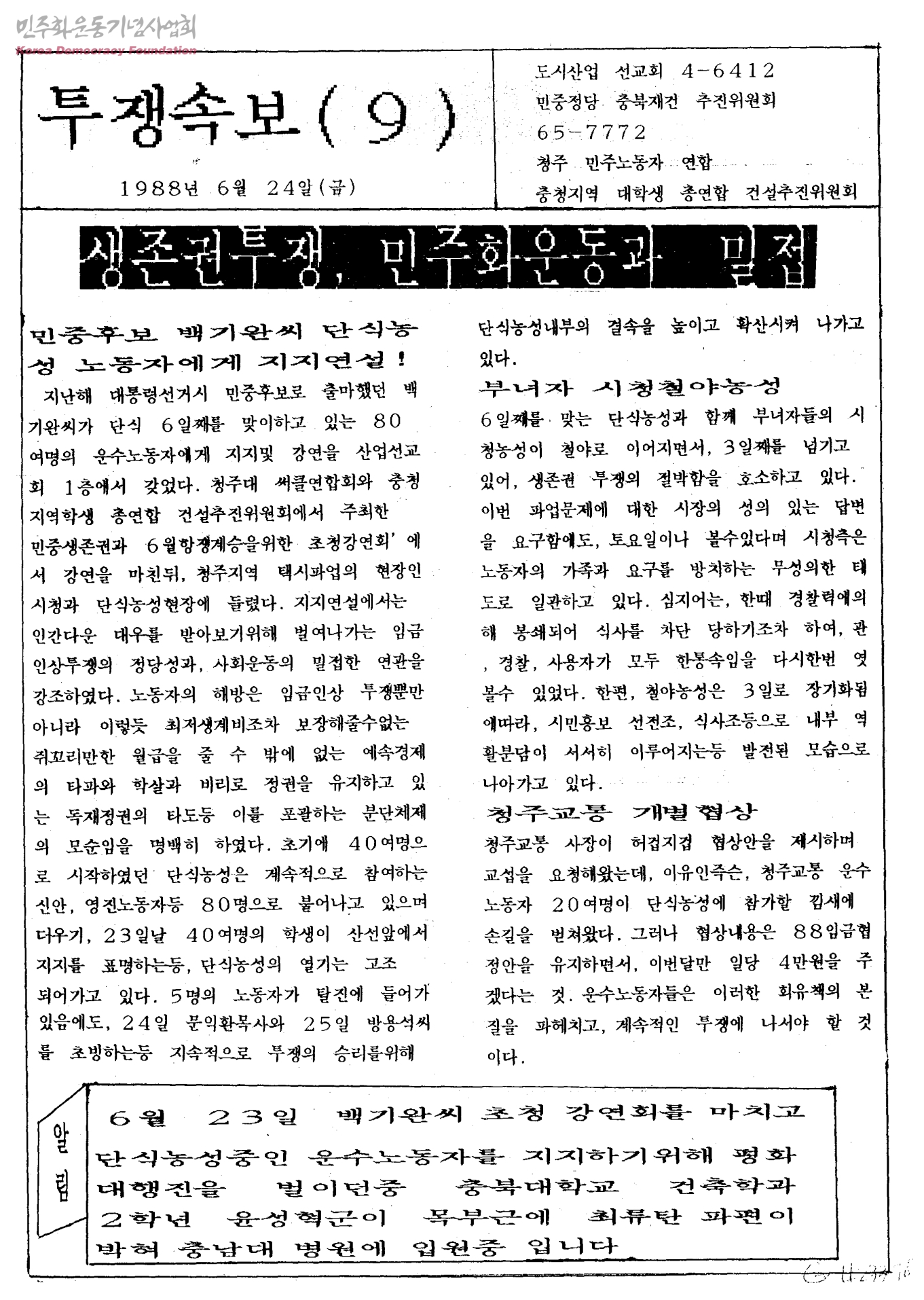 - -생존권투쟁과 민주화운동은 밀접한 관련을 갖고 있다 -88년 임금협정안은 철회되어야 한다