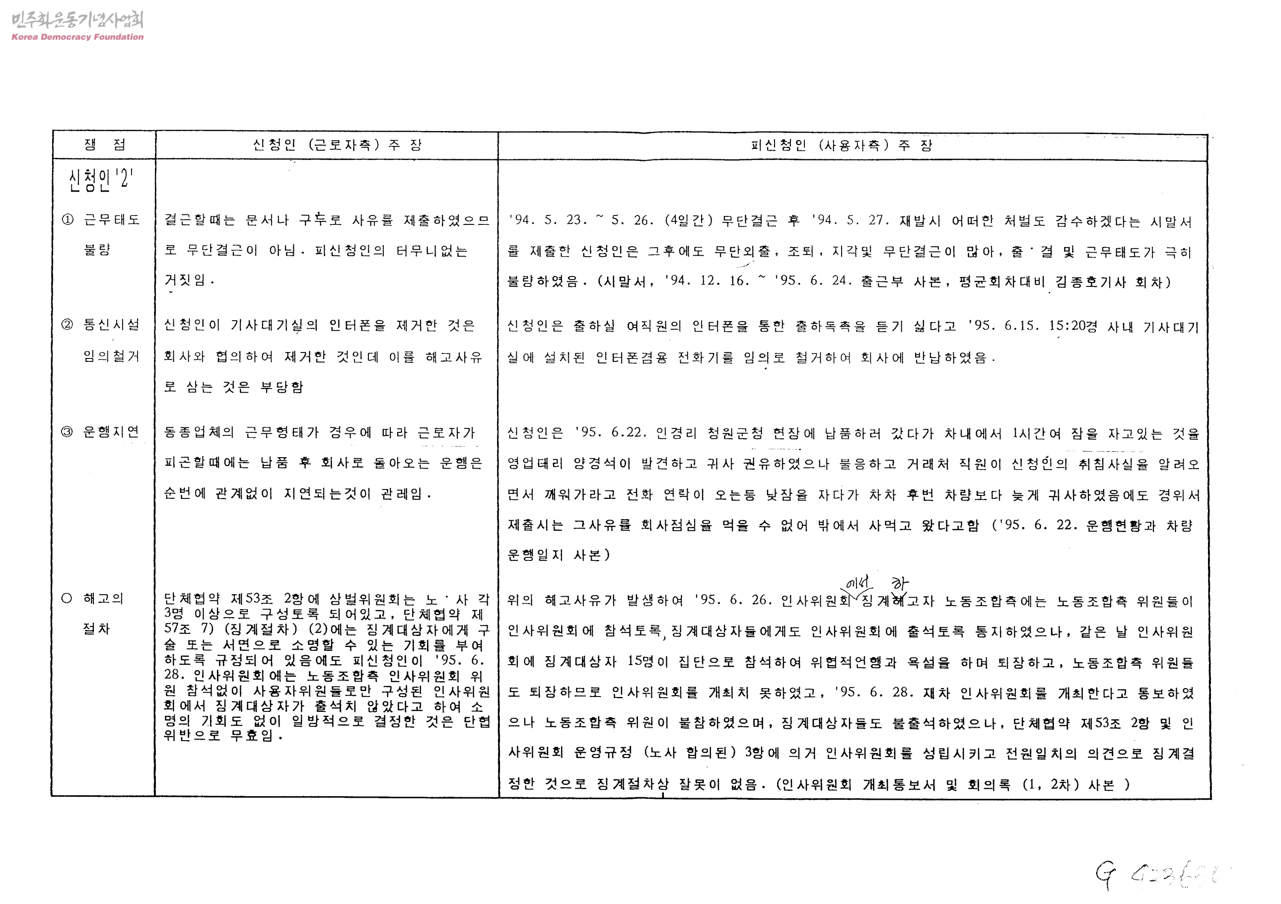 [중앙레미콘해고문서관련]중앙레미콘 해고자와 사측의 주장