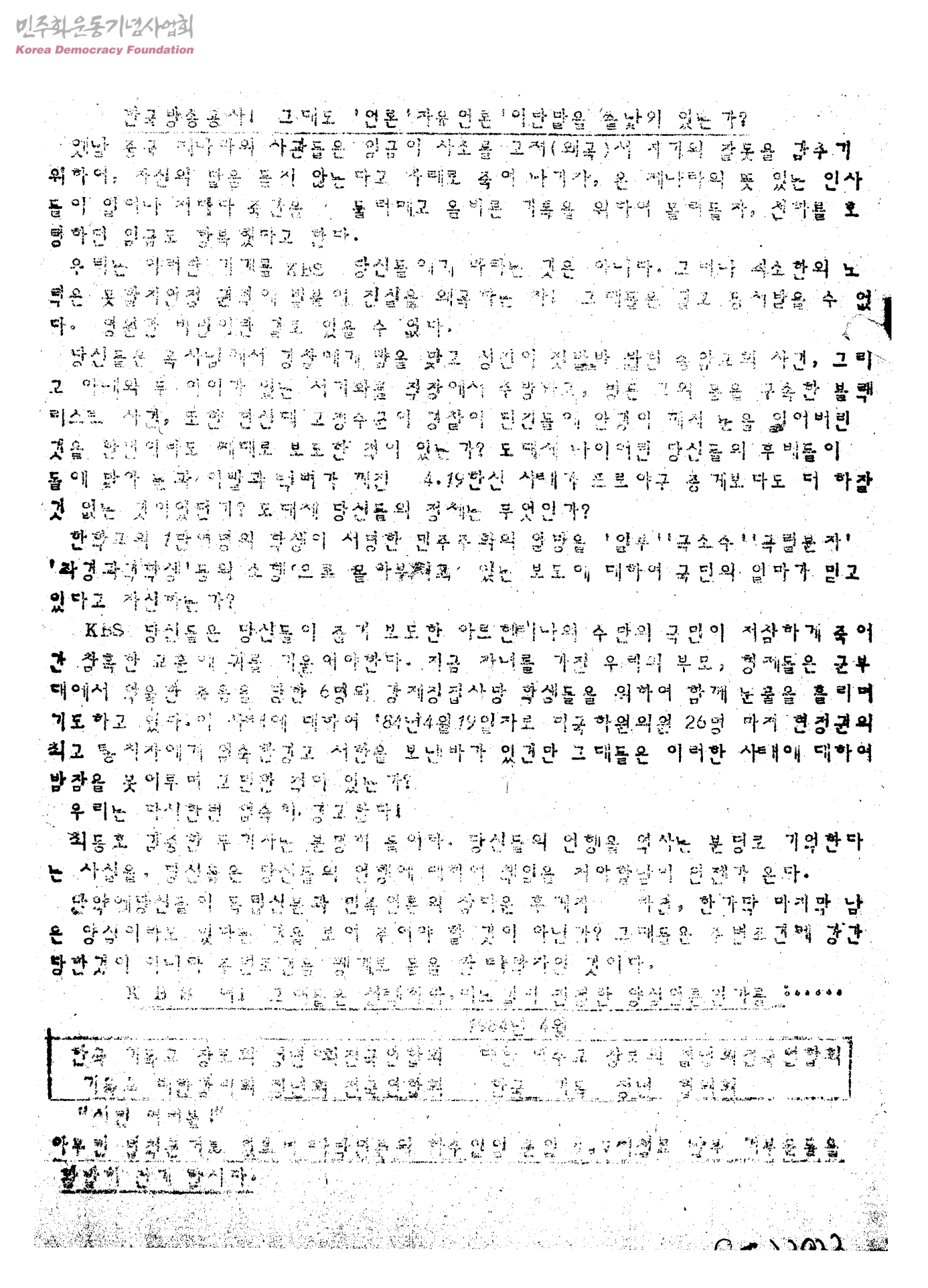 한국방송공사! 그대도 '언론'자유언론'이란 말을 쓸 낯이 있는가?