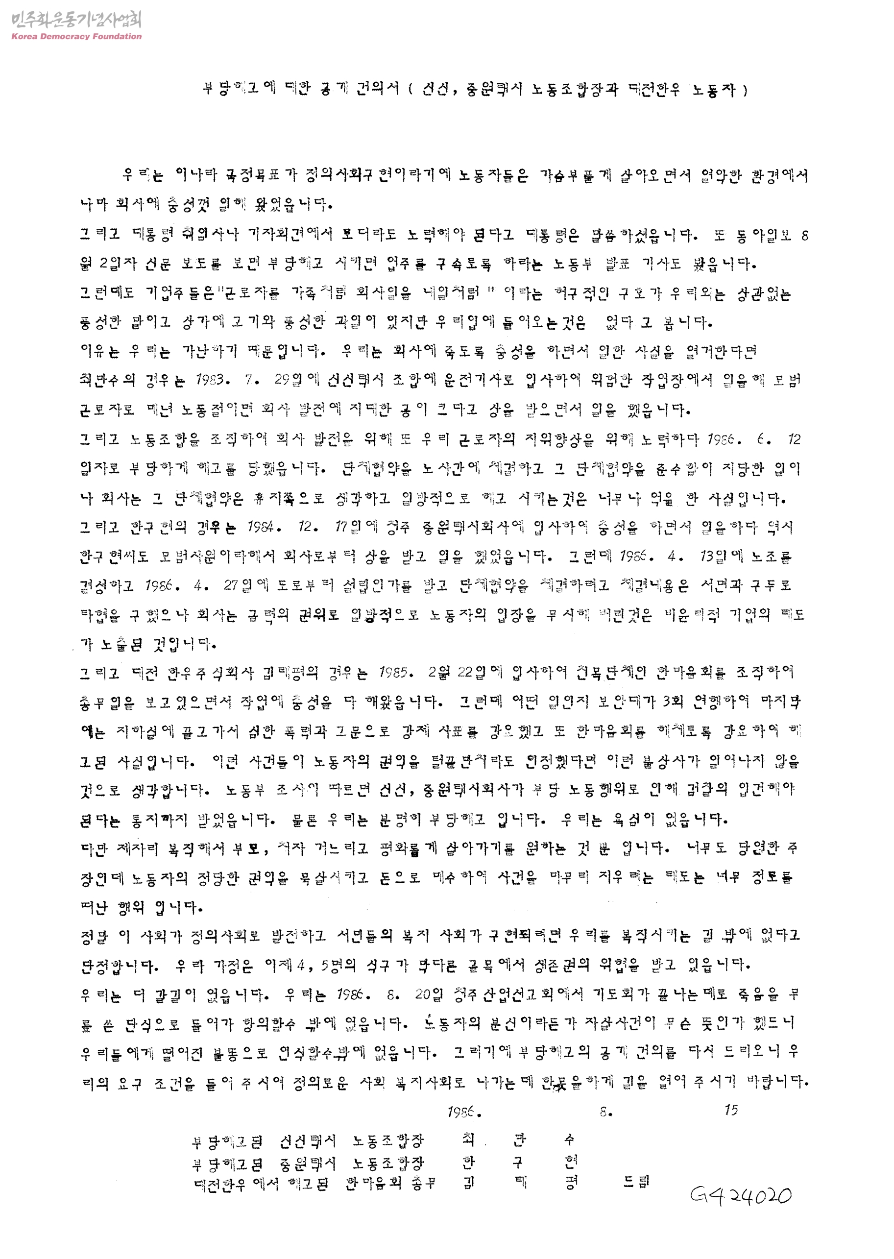 부당해고에 대한 공개건의서(신신,중원택시 노동조합장과 대전한우 노동자)