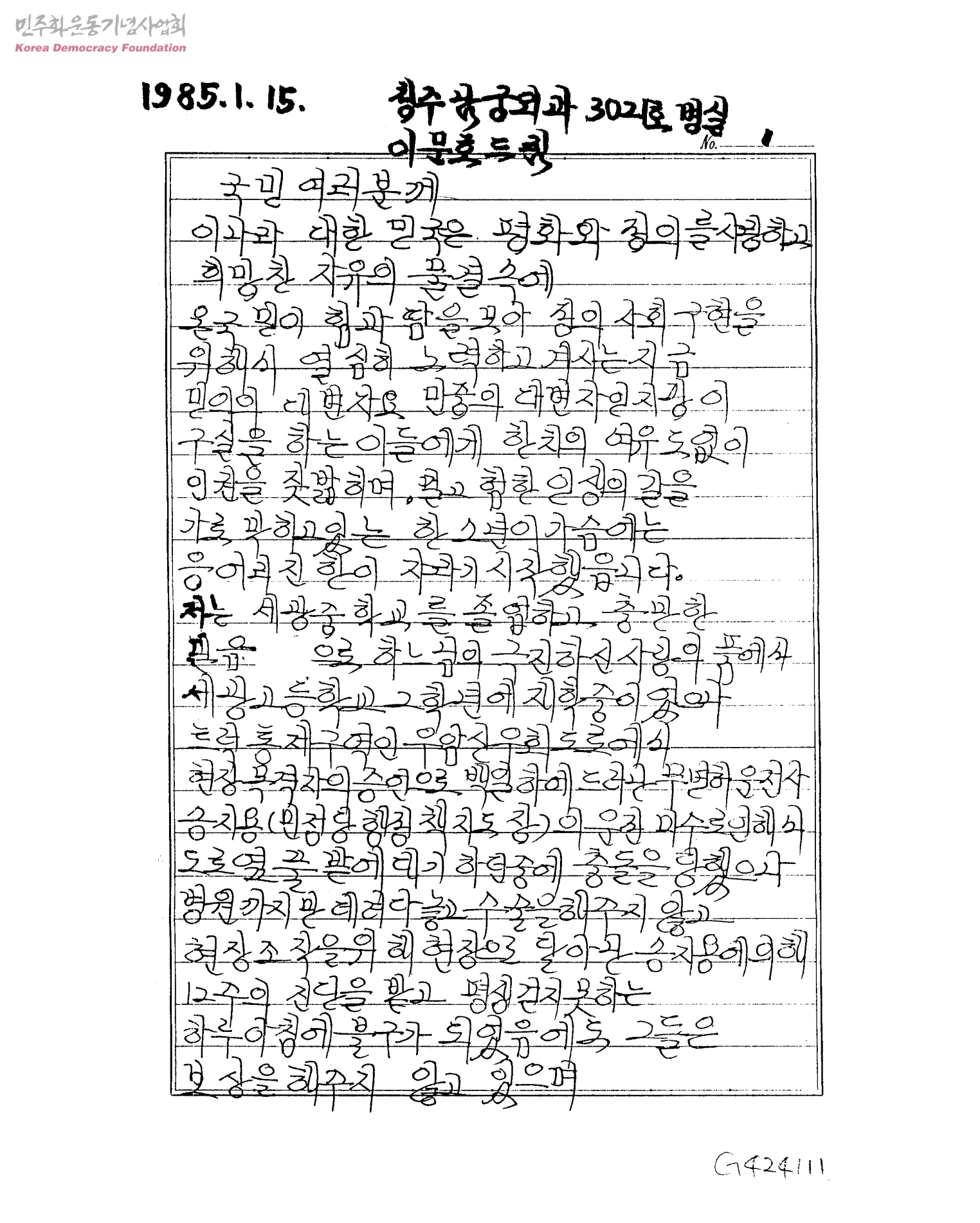 국민 여러분께[민정당 행정책 지도장 송지용에 의한 교통사고를 당하고 보상 받지 못하는 것에 관해]