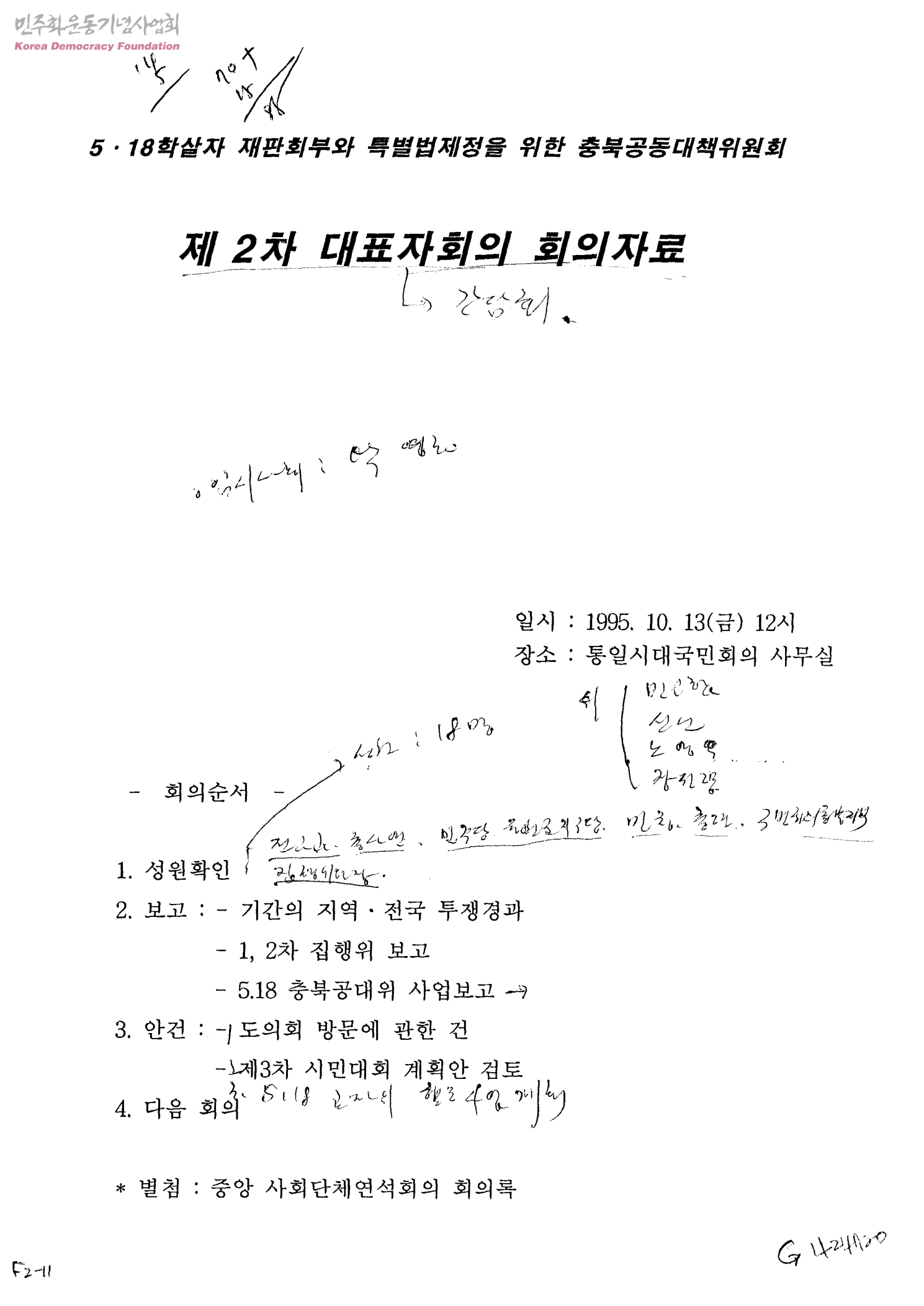 5·18학살자 재판회부와 특별법제정을 위한 충북공동대책위원회 제2차 대표자회의 회의자료