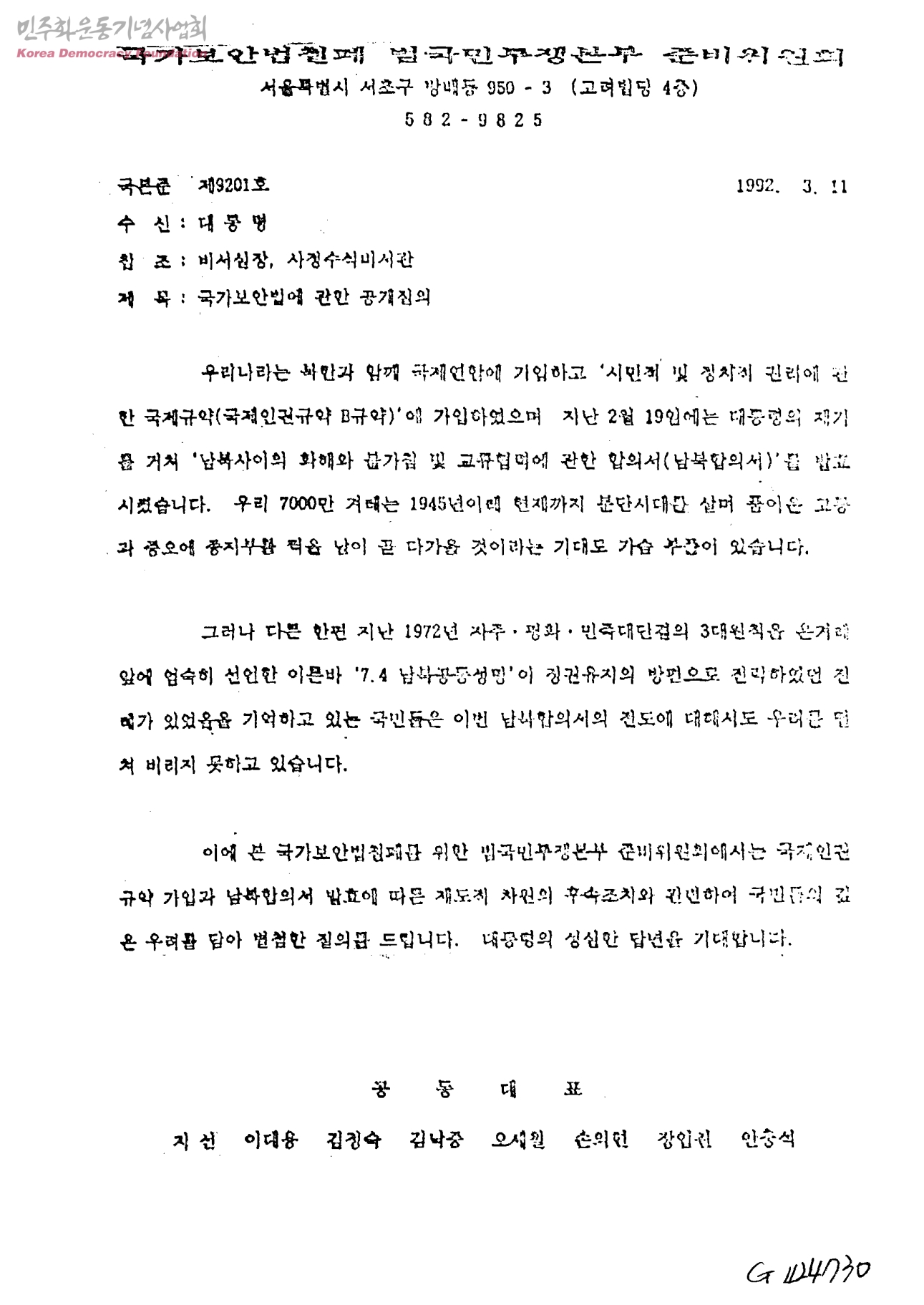 국가보안법에 관한 공개질의[수신:대통령,발신:국가보안법철폐범국민투쟁본부준비위원회]