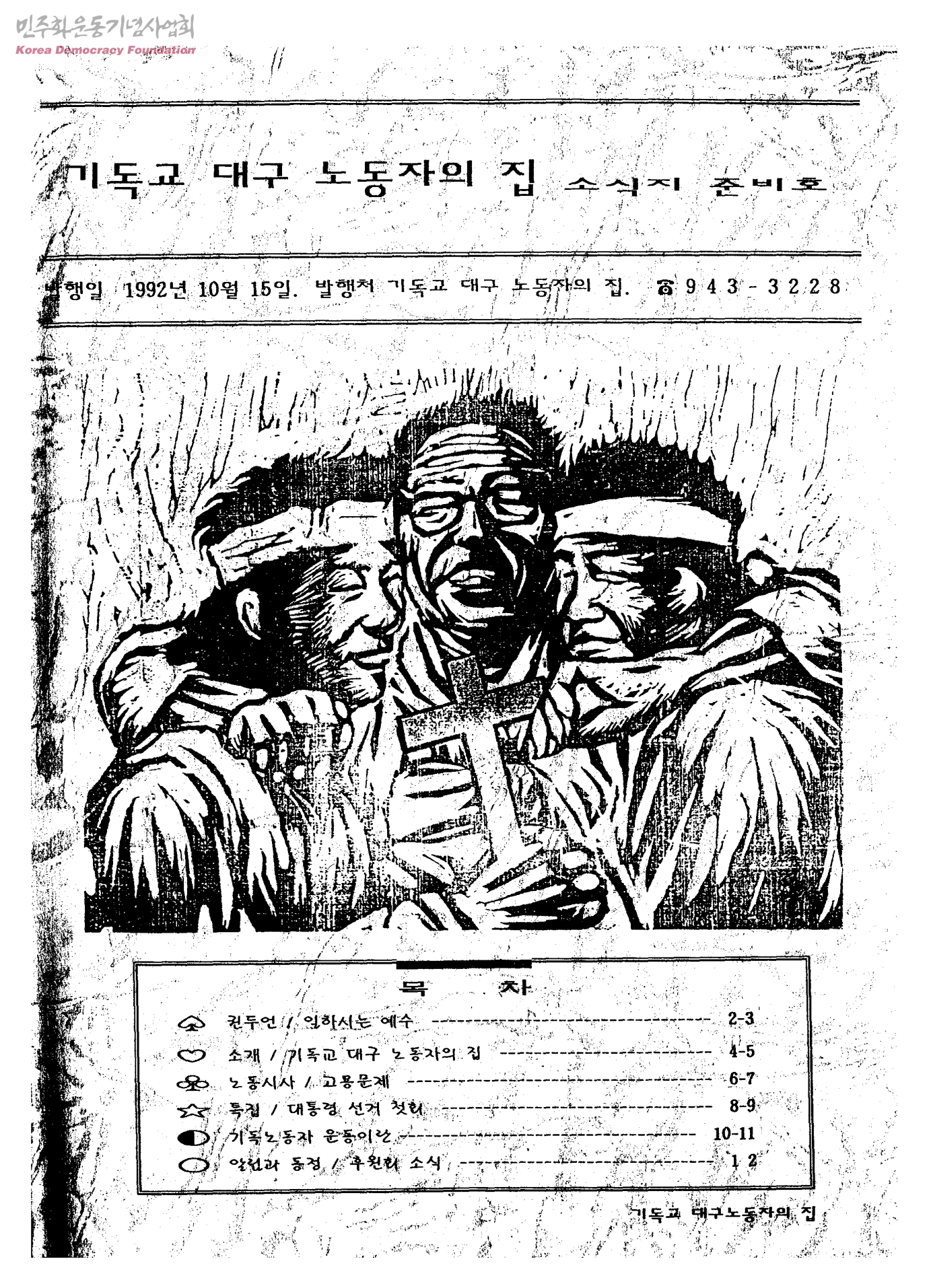 - 권두언/일하시는 예수 소개/기독교 대구 노동자의 집 노동시사/고용문제 특집/대통령 선거 첫회 기독노동자운동이란 알림과 동정/후원회 소식