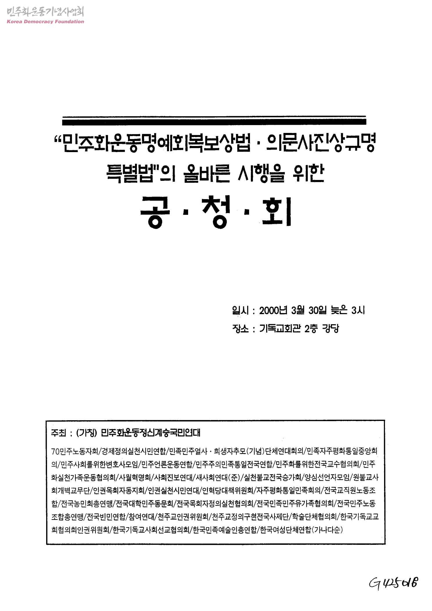 "민주화운동명예회복보상법·의문사진상규명특별법"의 올바른 시행을 위한 공청회