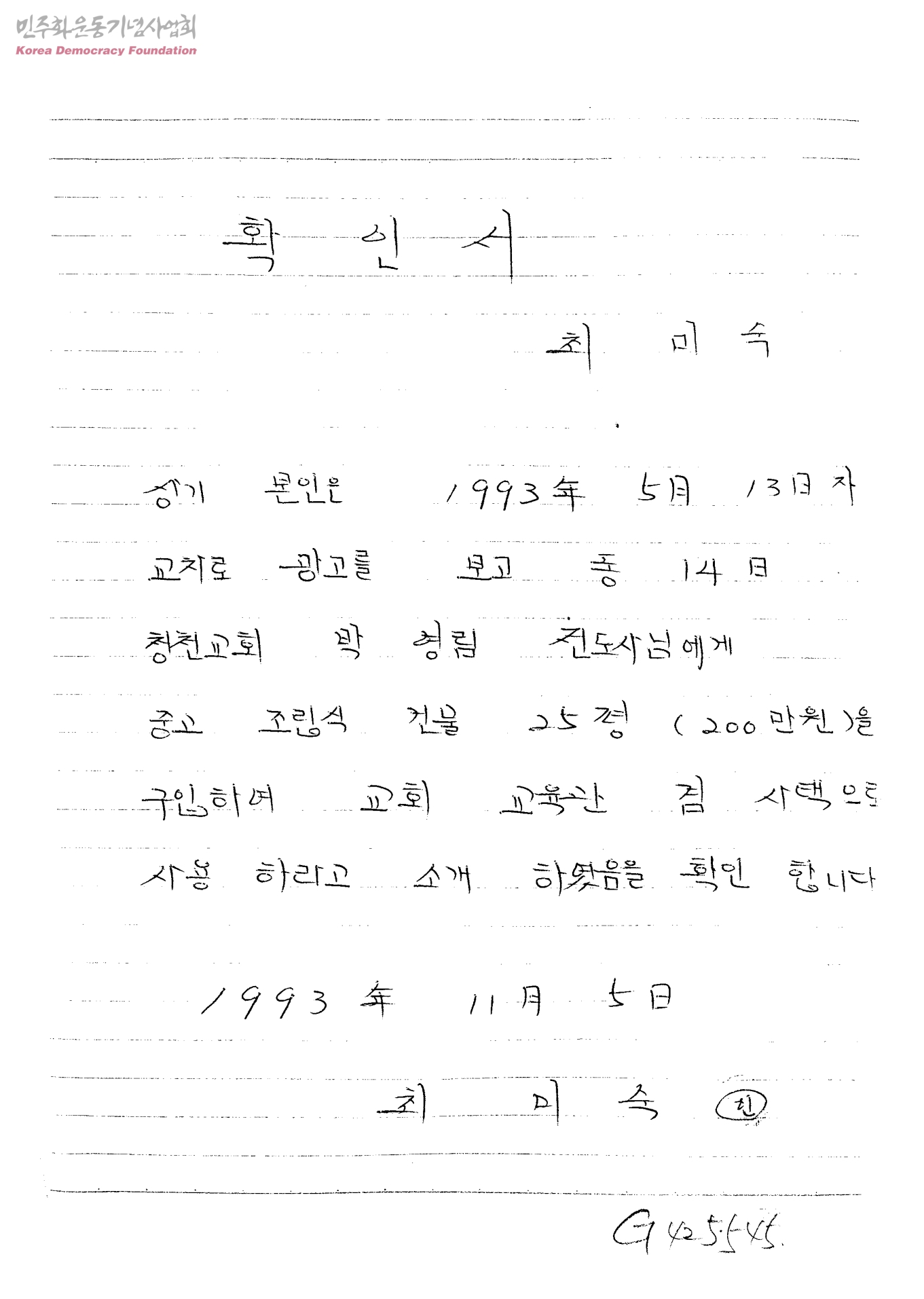 [박영림관련]확인서[박영림씨에게 조립식건물을 소개했다는 확인서]