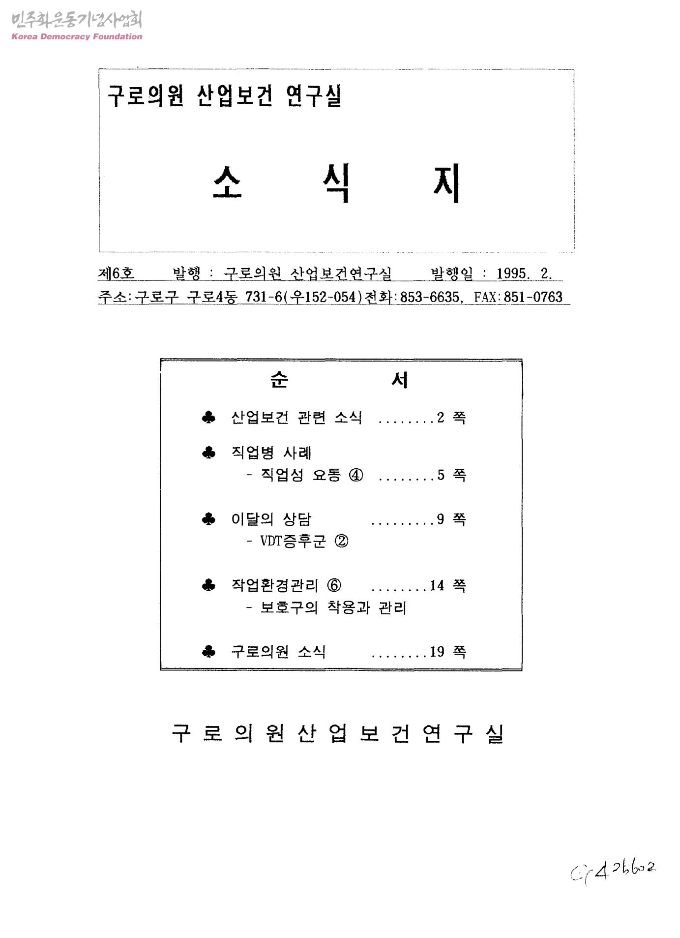 구로의원 산업보건 연구실 소식지 제6호