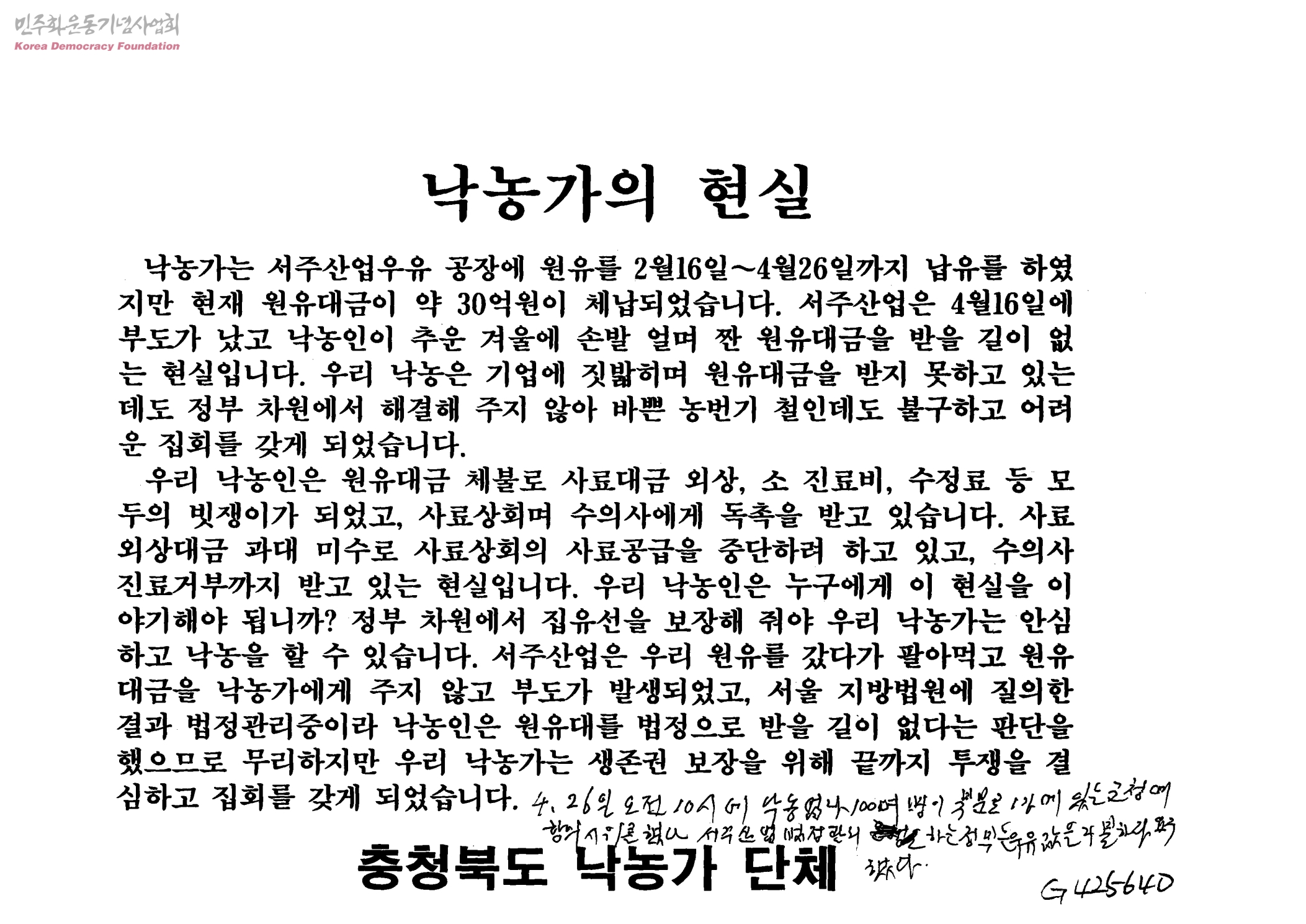 - 생산자 및 기증자가 ‘박용수’인 사진의 사용은 구매신청을 클릭하여 직접 사진 구매 신청을 하실 수 있습니다. 생산자 및 기증자가 ‘경향신문사’인 사진의 사용은 경향신문사 담당자(02-3701-1635)를 통해 구매하실 수 있습니다. 그 외의 생산자 및 기증자는 민주화운동기념사업회 사료관 담당자( h_jungwon@kdemo.or.kr / 031-361-9586 )에 문의바랍니다.