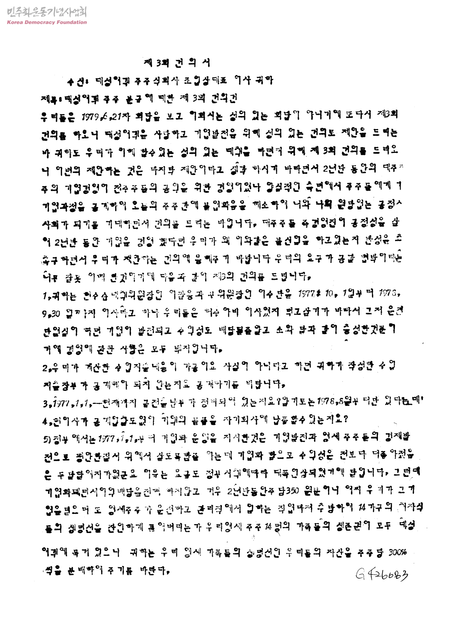 [대성여객 주주분규사건 관련자료]대성여객 주주분규에 대한 제3회 건의건[수신:대성여객주식회사 조입상대표이사, 발신: 대성여객주주분규수습대책위원회]
